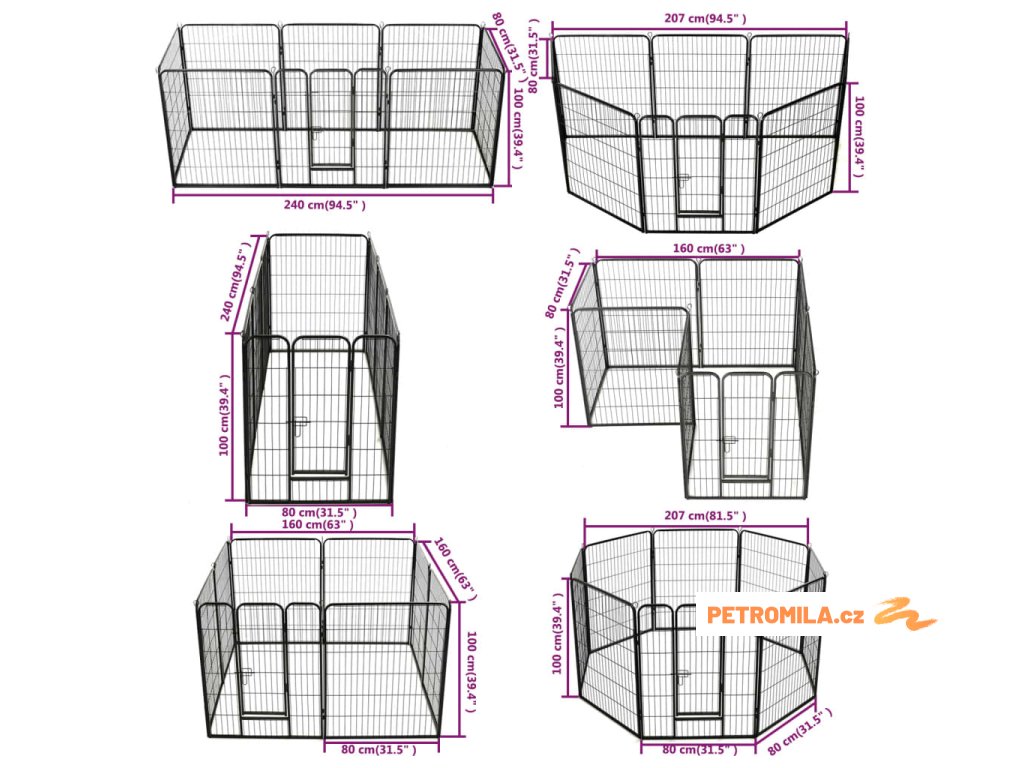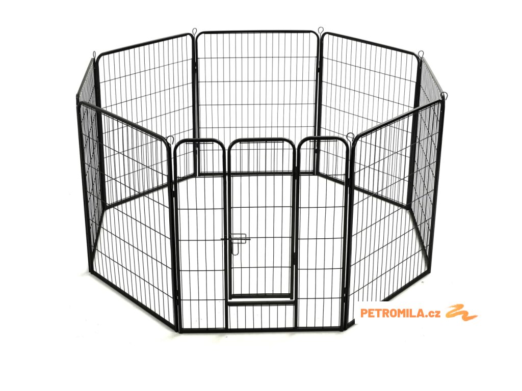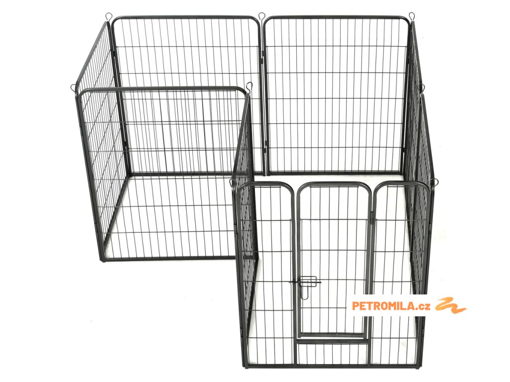 Psí výběh se dá snadno rozložit nebo složit. Skládá se z 8 vysoce odolných panelů, přičemž každý panel lze snadno připojit k dalšímu, což vám umožní stavět ohrádku do různých tvarů. Výběh je opatřen závěsnými dvířky s bezpečnostními západkami, jež zajišťují snadný přístup. Ohrádka je pevná, odolná vůči povětrnostním vlivům a vyrobená z rezuvzdorné oceli s práškovým nástřikem, takže je vhodná pro venkovní i vnitřní použití. Součástí dodávky jsou i kolíky pro upevnění k zemi, které zajišťují bezpečnost ohrádky pro psy a dodávají jí stabilitu.