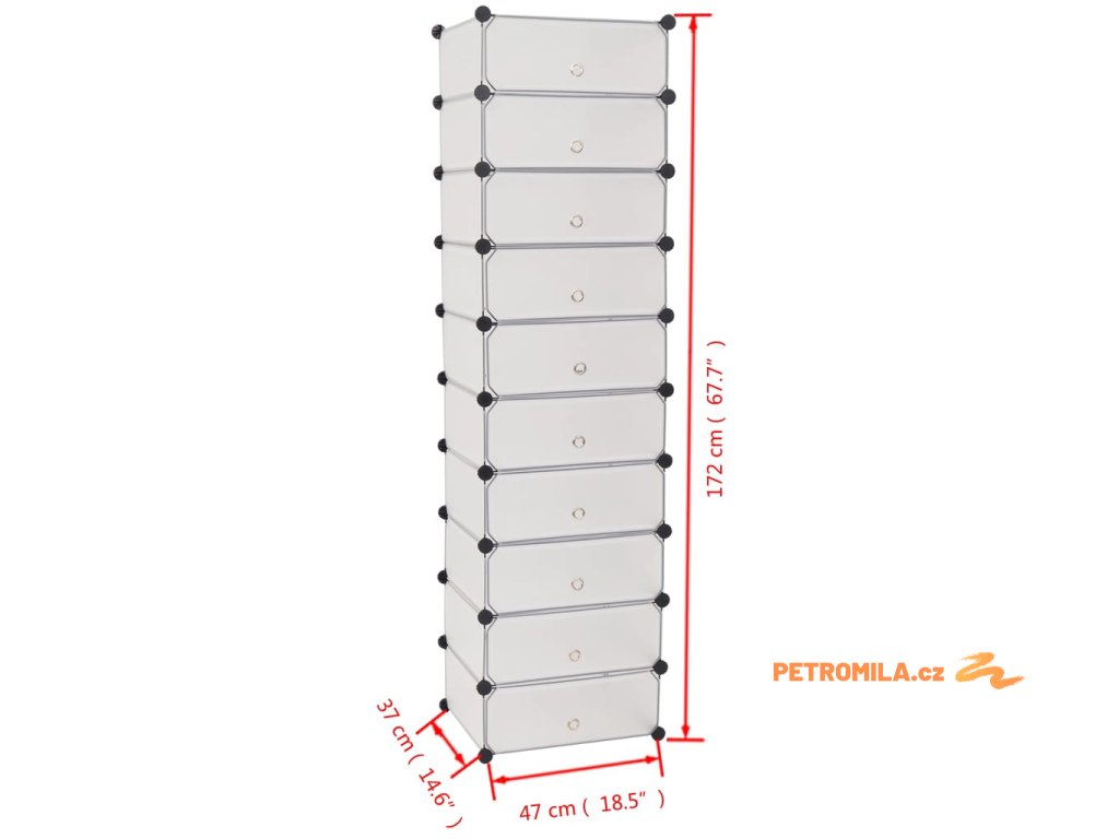 Náš botník o 10 přihrádkách je stylový, ale zároveň funkční. Každá z přihrádek má vlastní dvířka, která vaše boty ochrání před prachem. Obuv se zároveň nebude nikde povalovat.