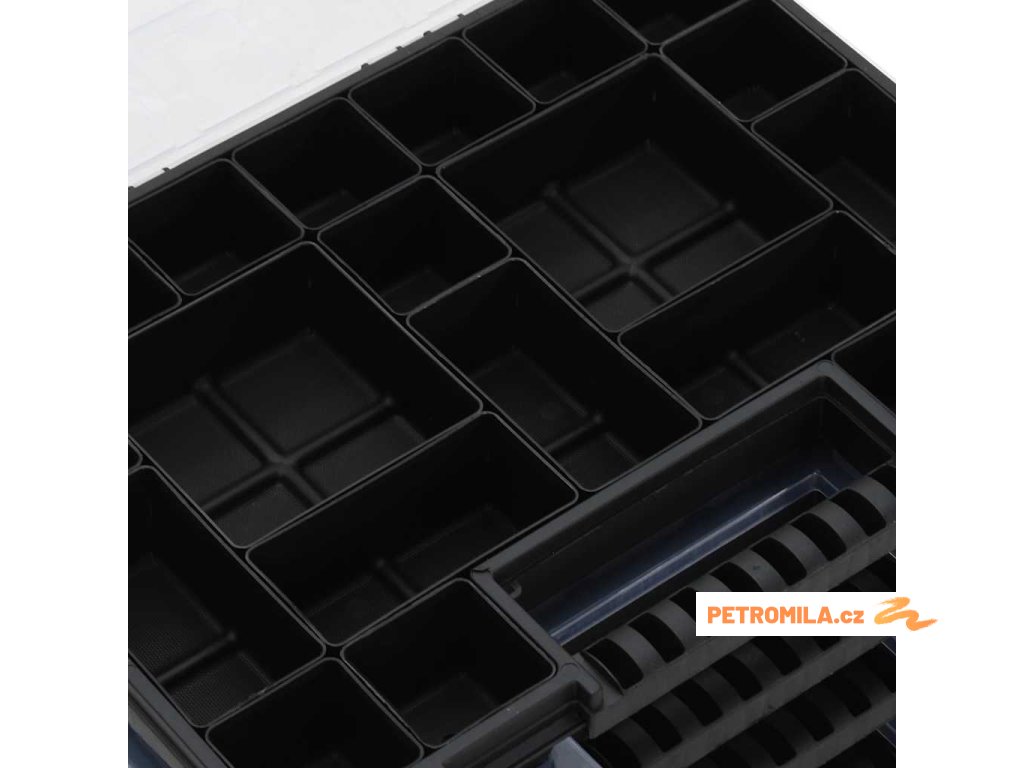 - Každý organizér obsahuje 21 přihrádek (2 velké, 5 středních, 14 malých)