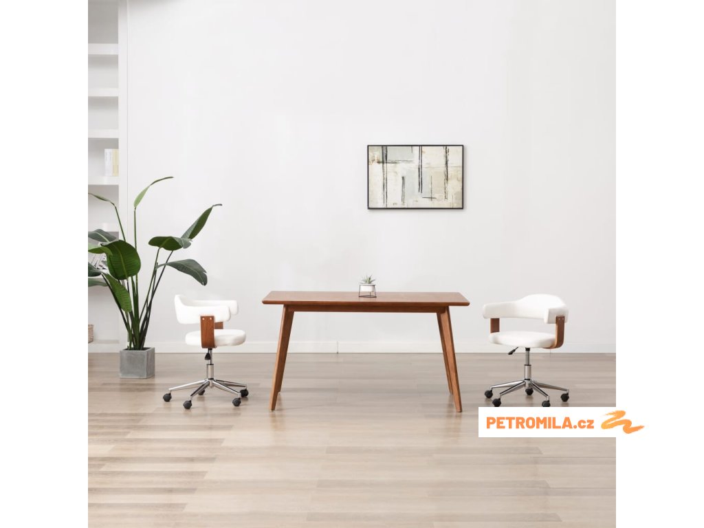 Otočná jídelní židle bílá ohýbané dřevo a umělá kůže