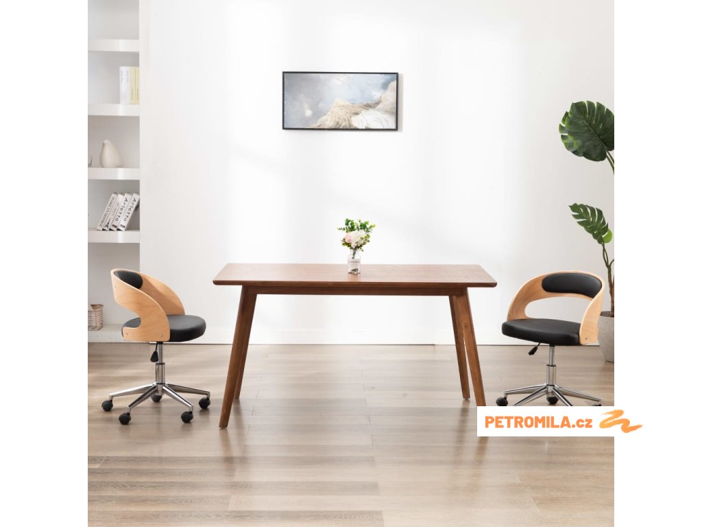 Otočné jídelní židle 2 ks černé ohýbané dřevo a umělá kůže