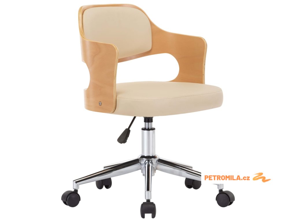 Otočná jídelní židle krémová ohýbané dřevo a umělá kůže