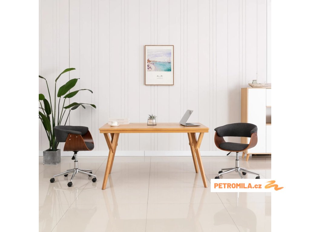 Otočná jídelní židle šedá ohýbané dřevo a textil