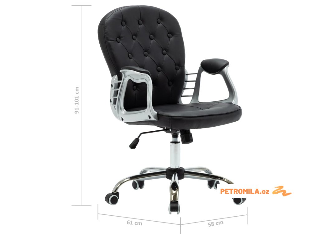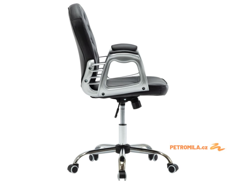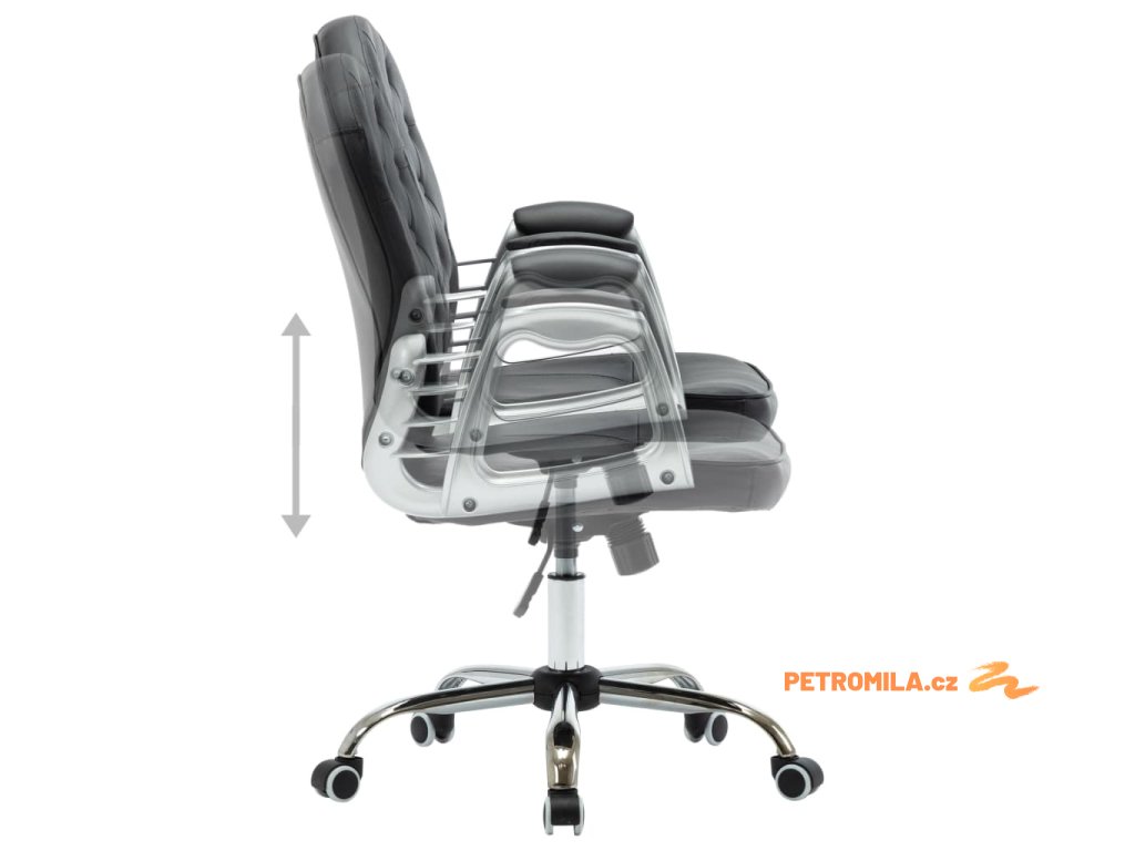 Sedadlo je silně polstrované a opěradlo je čalouněné měkkou umělou kůží, což usnadňuje čistění a zvyšuje pohodlí. Stolička je vybavená plynovým zvedacím mechanismem, takže lze nastavit její výšku od 90 do 101 cm podle vašich momentálních potřeb. Židli se zabudovanými kolečky lze snadno přemisťovat.