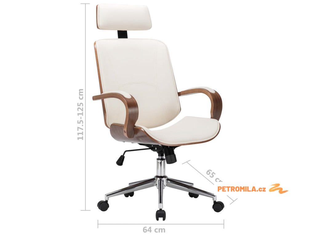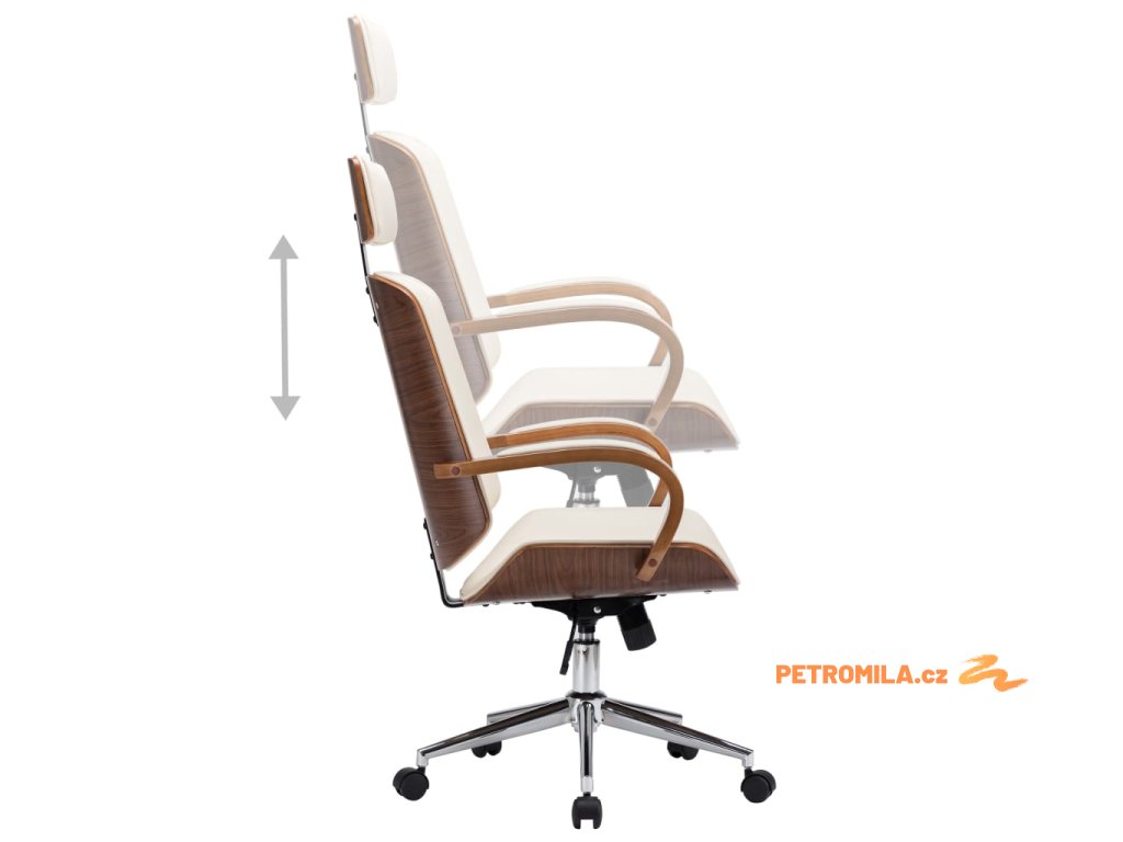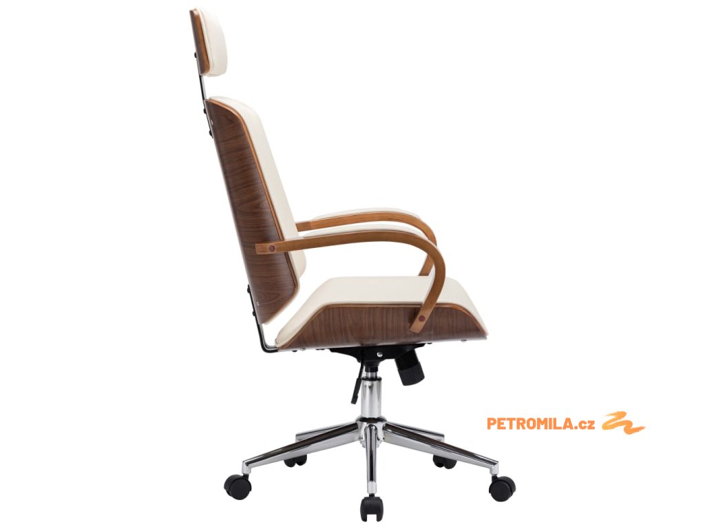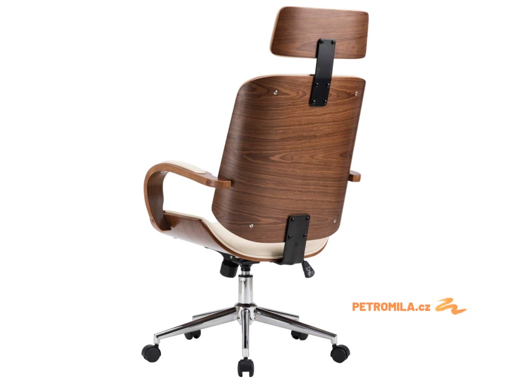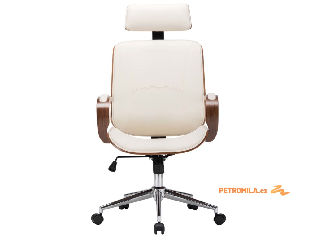Otočná kancelářská židle opěrka hlavy krémová umělá kůže ohýbané dřevo