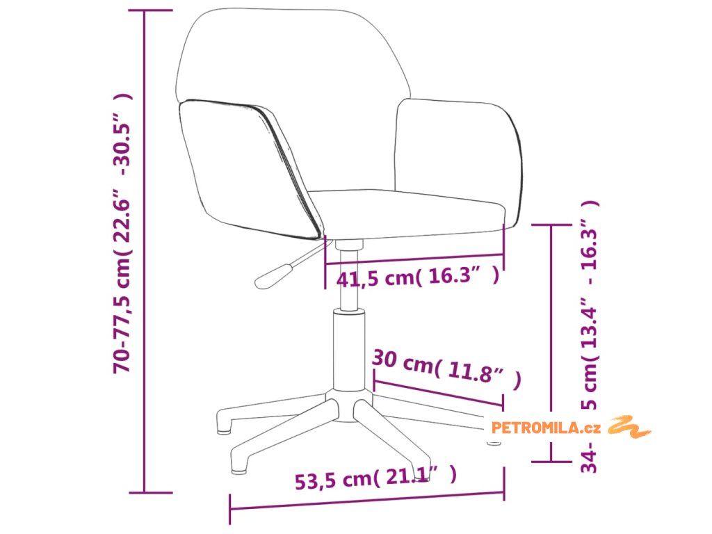 - Celkové rozměry: 53,5 x 57 x (70–77,5) cm (Š x H x V)