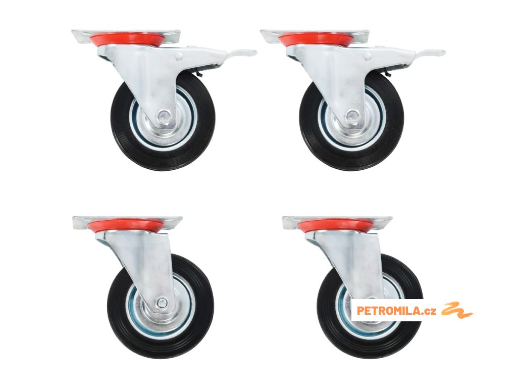 Balení obsahuje 2 otočná kolečka a 2 otočná kolečka s dvojitou brzdou.