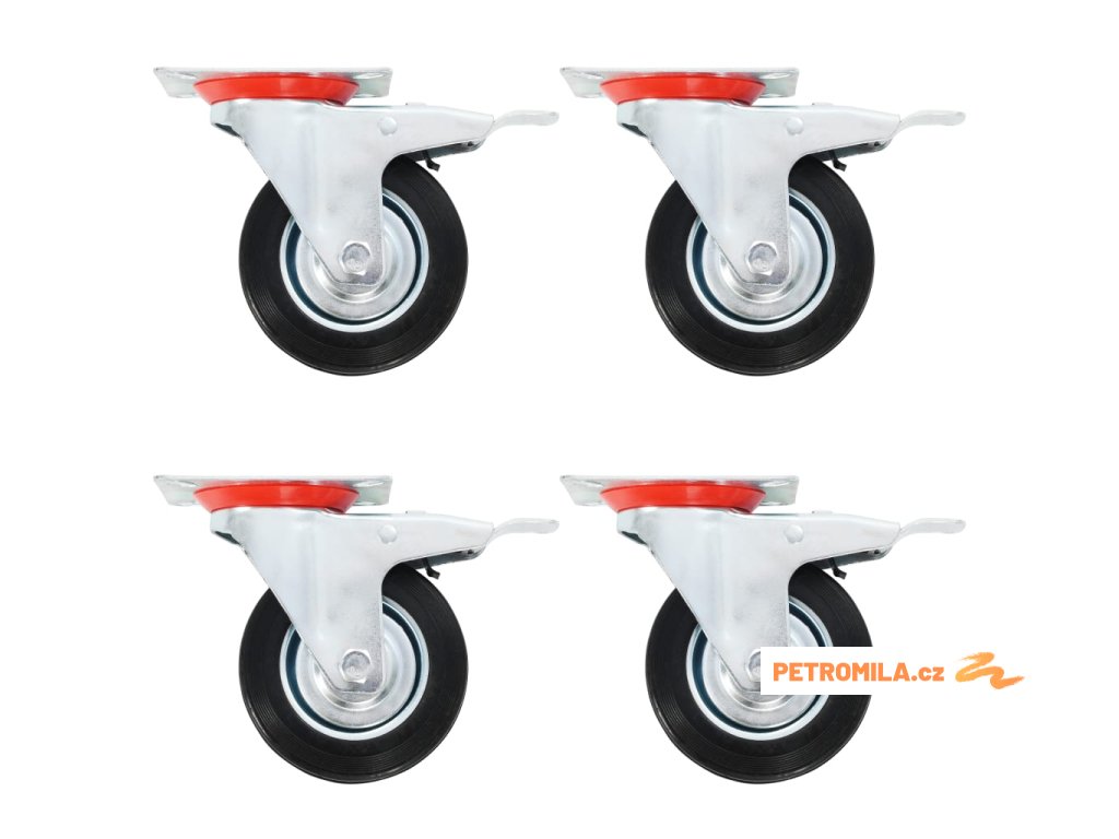 - Balení obsahuje 4 otočná kolečka s dvojitou brzdou