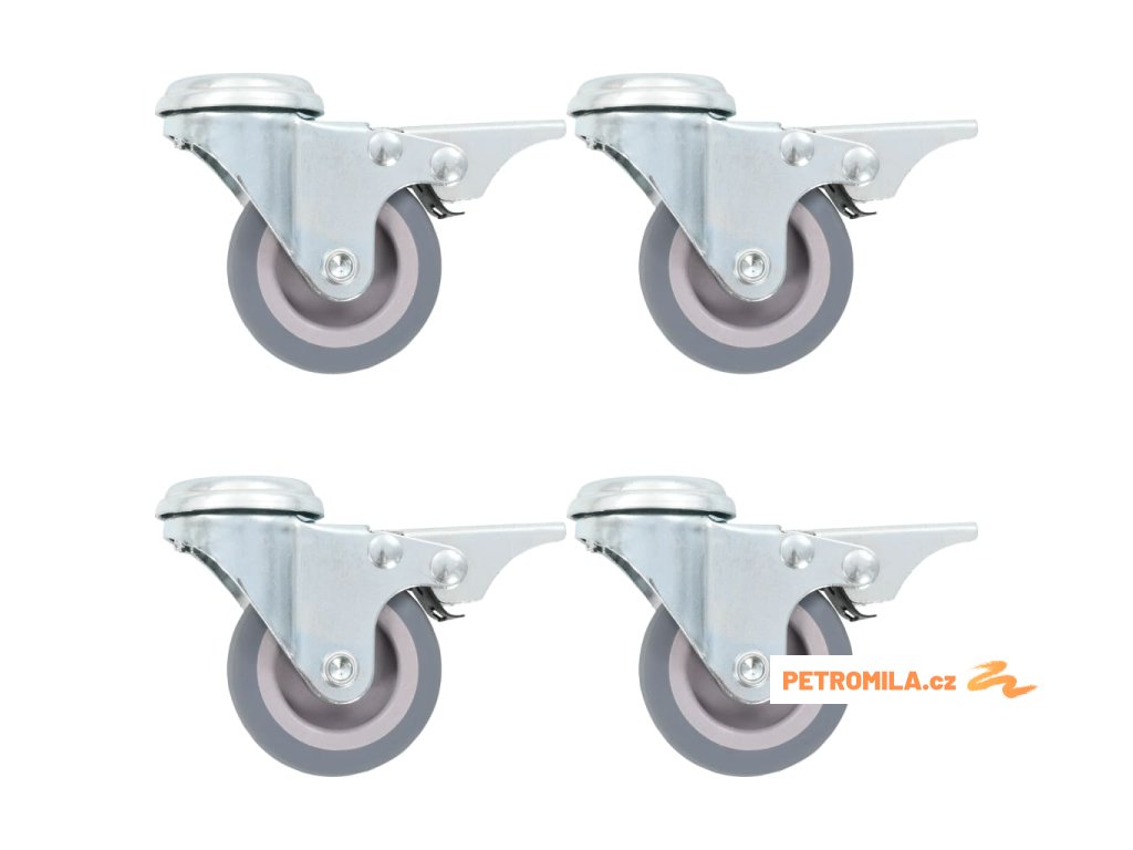 - Balení obsahuje 4 otočná kolečka s otvorem pro šroub a dvojitou brzdou