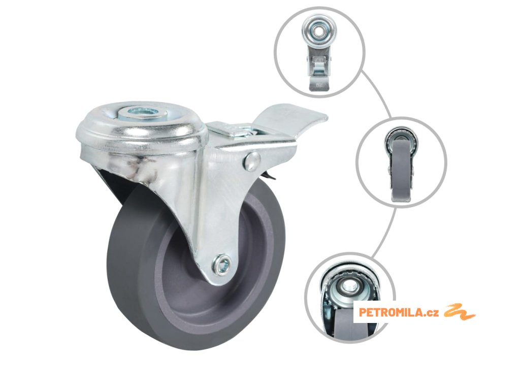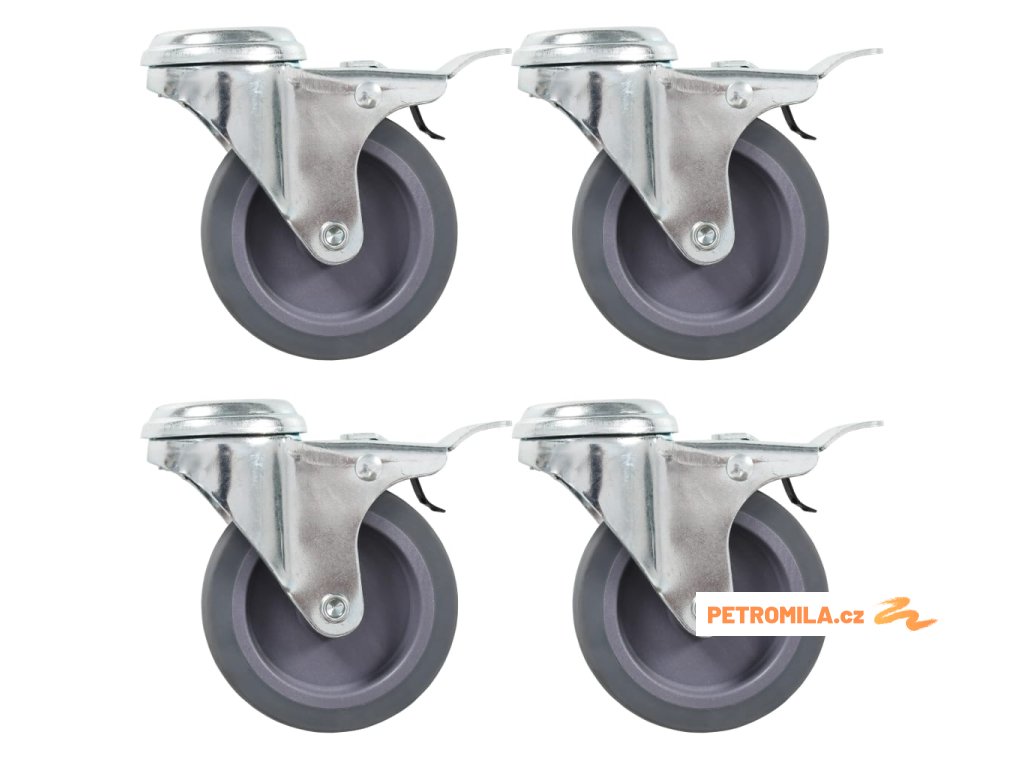 - Balení obsahuje 4 otočná kolečka s otvorem pro šroub a dvojitou brzdou