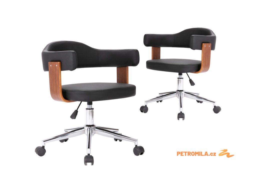 Otočné jídelní židle 2 ks černé ohýbané dřevo a umělá kůže