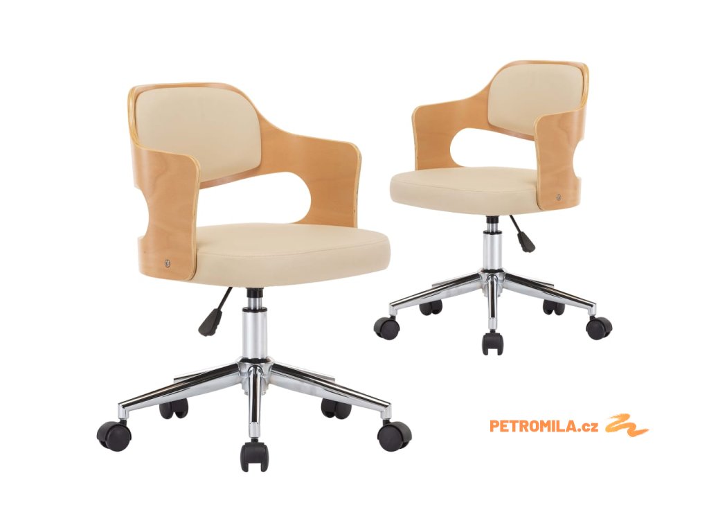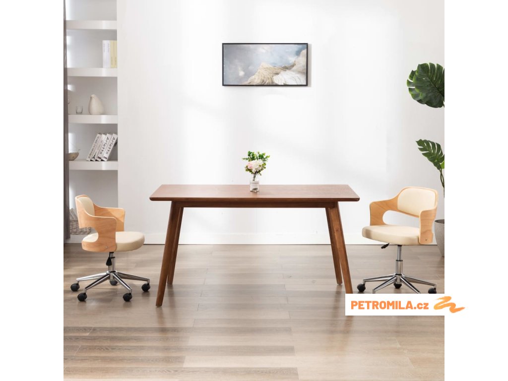 Otočné jídelní židle 2 ks krémové ohýbané dřevo a umělá kůže