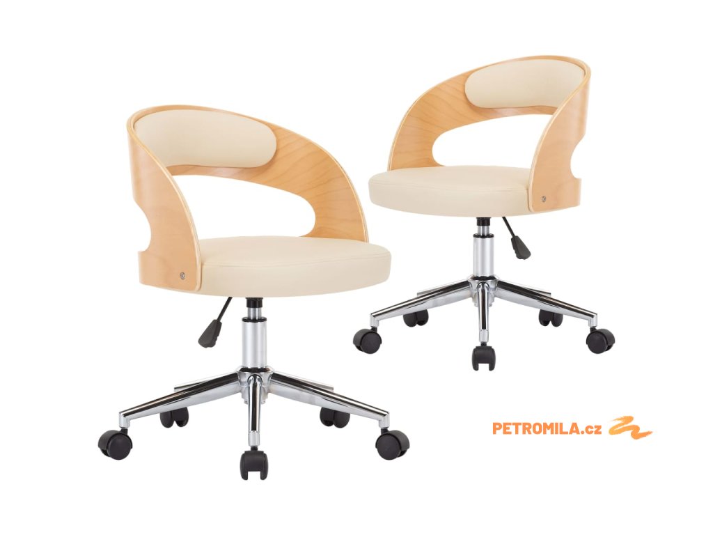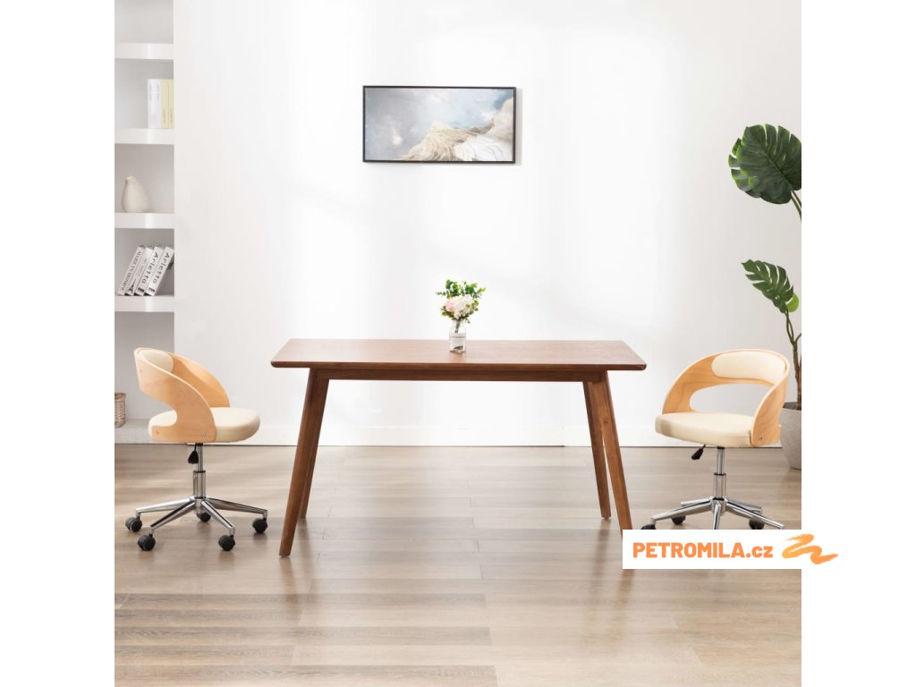 Otočné jídelní židle 2 ks krémové ohýbané dřevo a umělá kůže