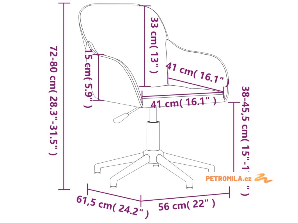 - Celkové rozměry: 56 x 61,5 x (72–80) cm (Š x H x V)