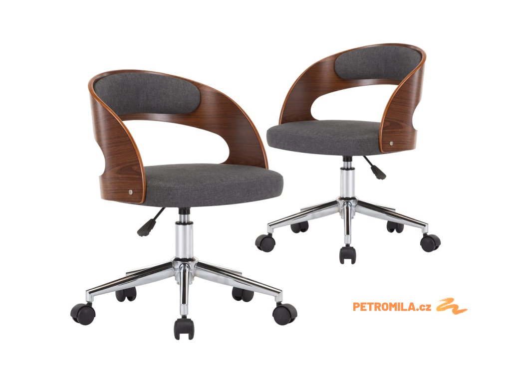 Otočné jídelní židle 2 ks šedé ohýbané dřevo a textil