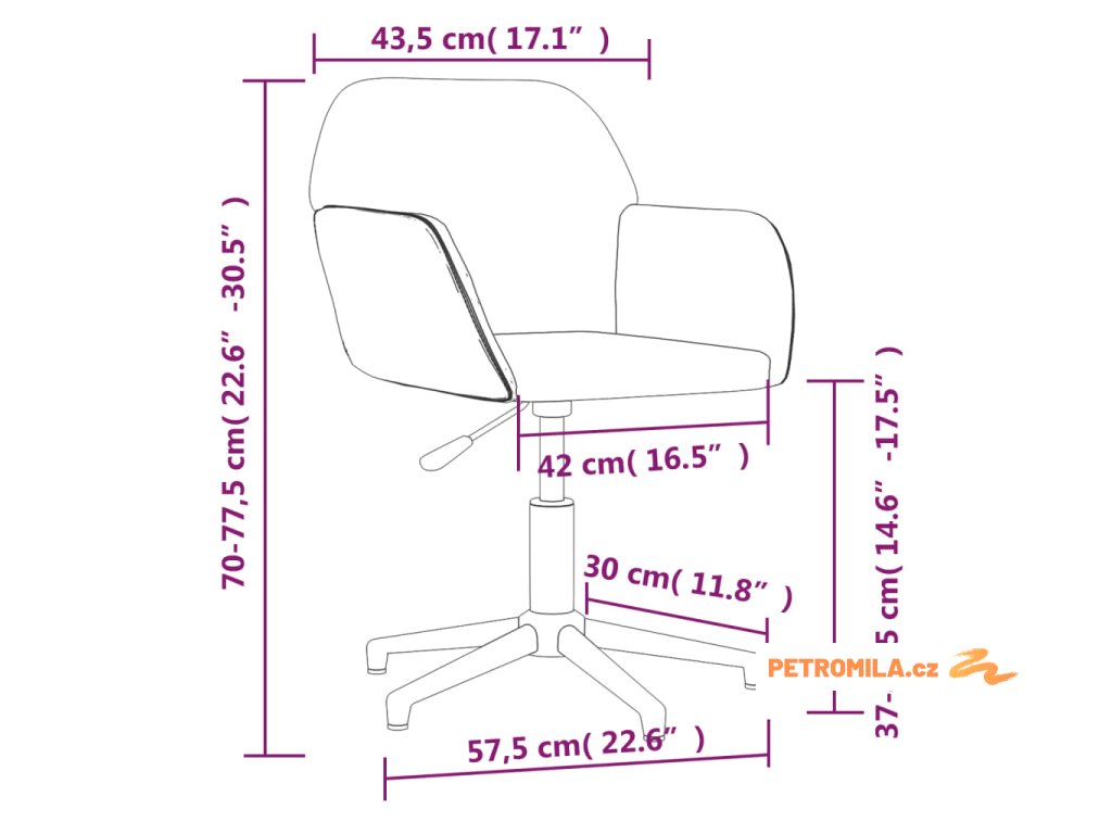 - Celkové rozměry: 53,5 x 57 x (70–77,5) cm (Š x H x V)