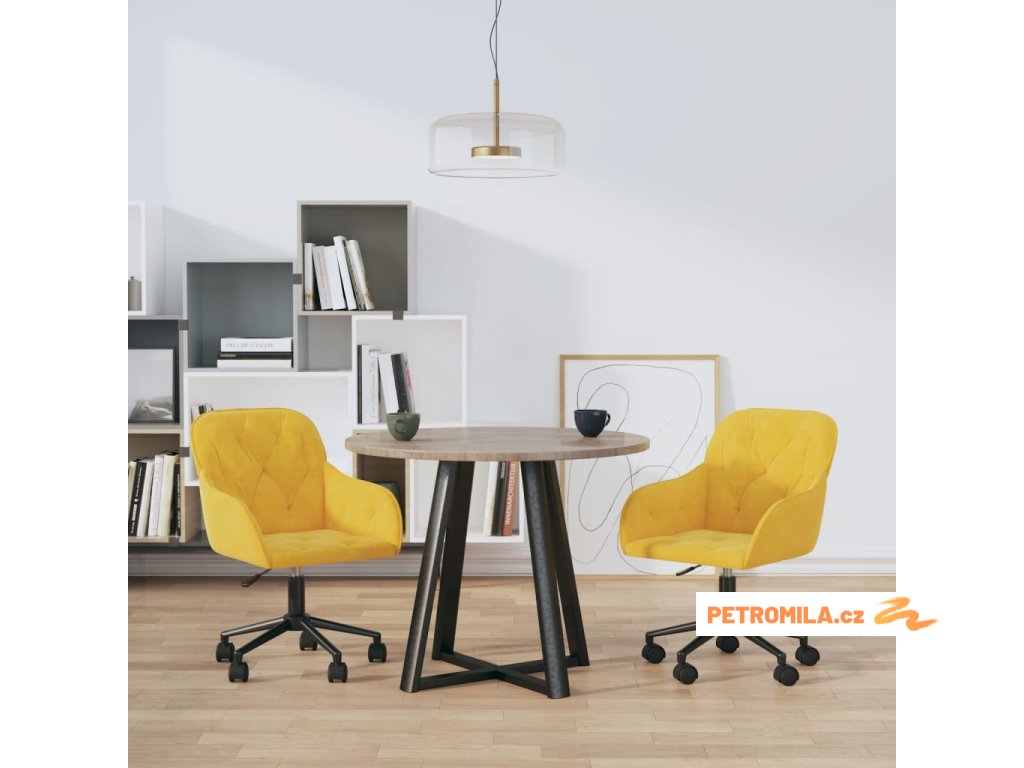 Otočné jídelní židle 2 ks žluté samet