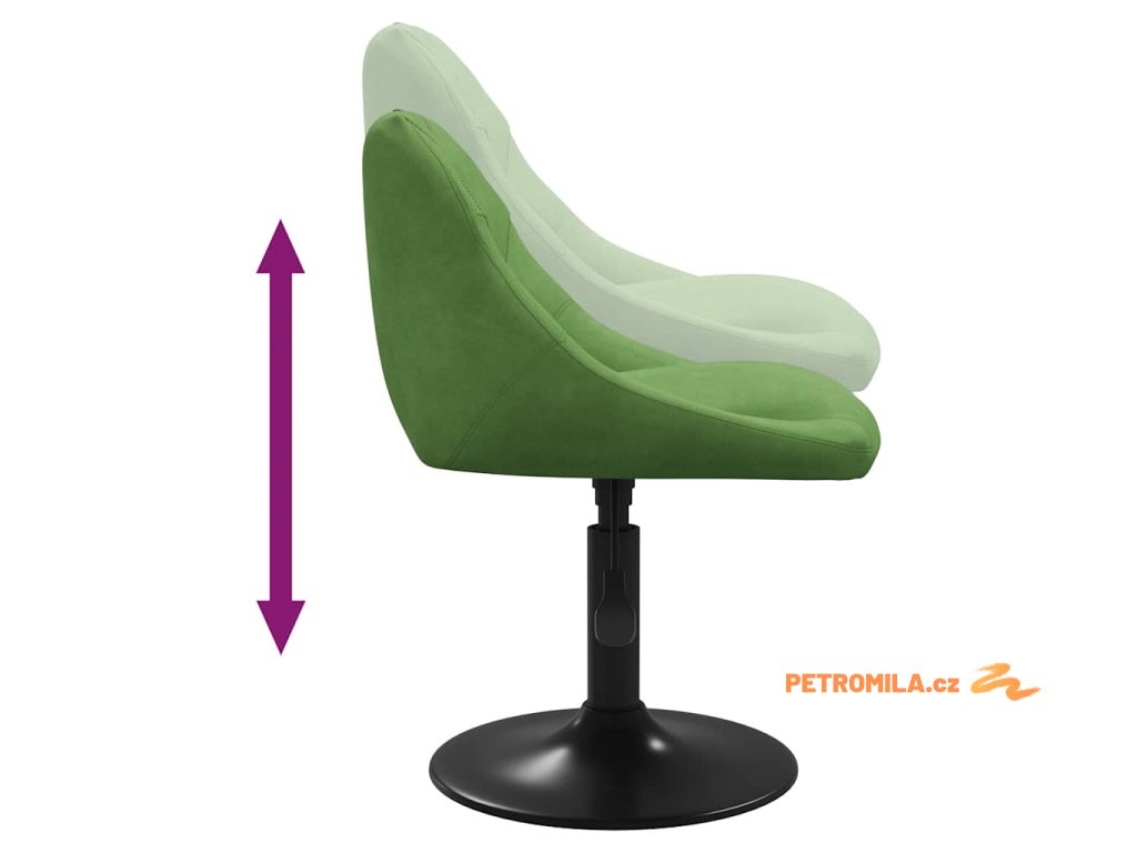 Otočné židle jsou čalouněné měkkým sametem a zajistí vám při sezení maximální pohodlí. Ocelový rám s černým práškovým nástřikem zaručuje mimořádnou odolnost. Výšku otočných židlích lze nastavit pomocí mechanismu s plynovým pístem, takže jsou dokonalým doplňkem do každé jídelny. Navíc se otáčí o 360 stupňů, což jim dodává velkou flexibilitu.