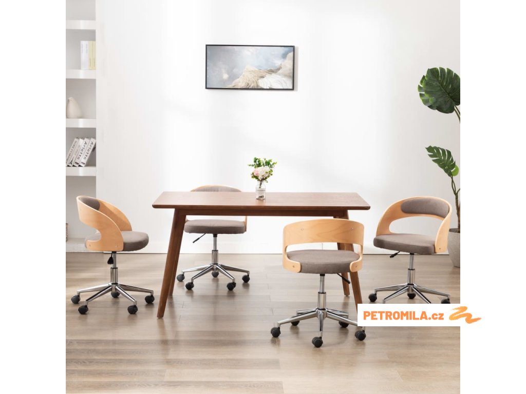 Otočné jídelní židle 4 ks taupe ohýbané dřevo a textil