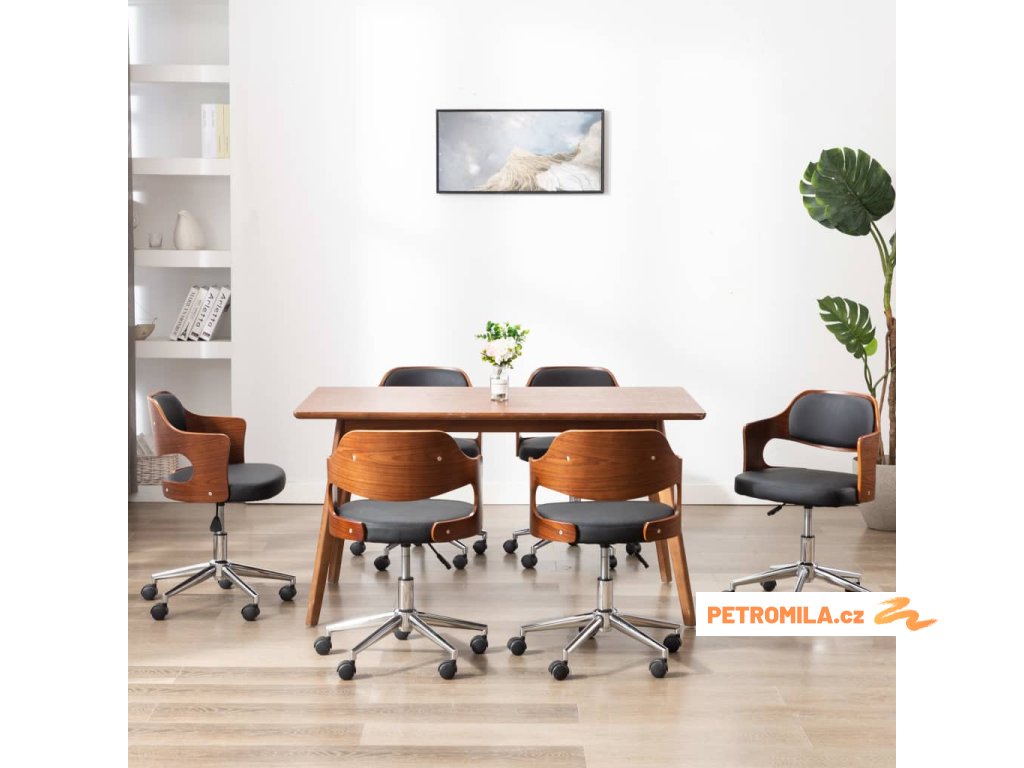 Otočné jídelní židle 6 ks černé ohýbané dřevo a umělá kůže