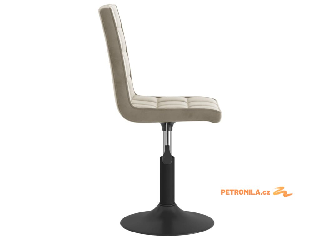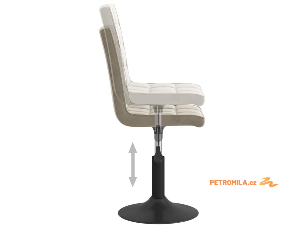 Kuchyňská židle je čalouněná měkkým sametem a zaručeně vám při sezení poskytne optimální pohodlí. Ocelový rám zajišťuje vysokou odolnost a stabilitu. Výšku sezení si můžete nastavit pomocí mechanismu s plynovým pístem. Sedák se navíc otáčí o 360 stupňů, což židli dodává výjimečnou flexibilitu.