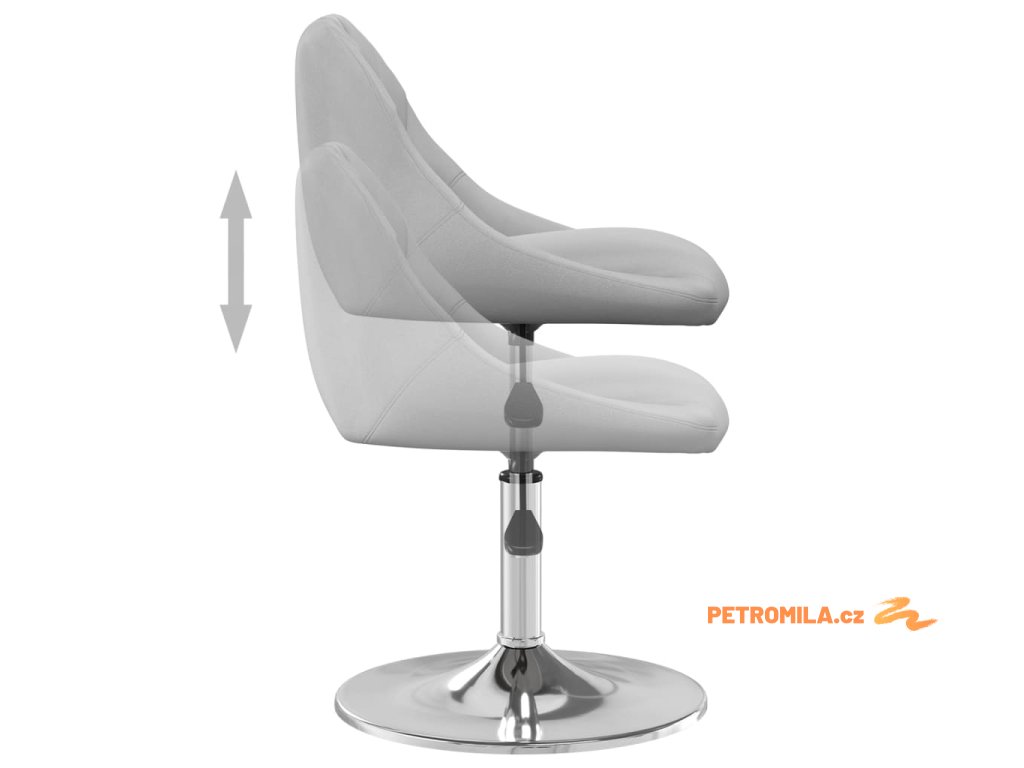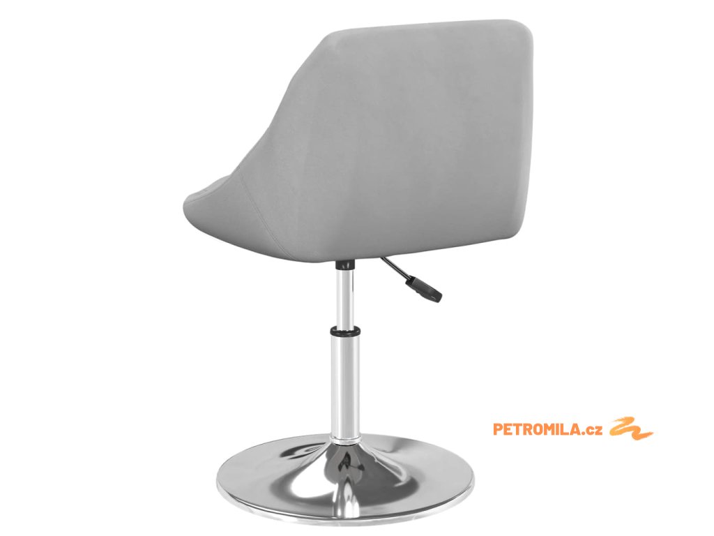Otočné židle jsou čalouněné měkkým sametem a zajistí vám při sezení maximální pohodlí. Chromovaný ocelový rám je zárukou výtečné odolnosti. Výšku otočných židlích lze nastavit pomocí mechanismu s plynovým pístem, takže jsou dokonalým doplňkem do každé jídelny. Navíc se otáčí o 360 stupňů, což jim dodává velkou flexibilitu.