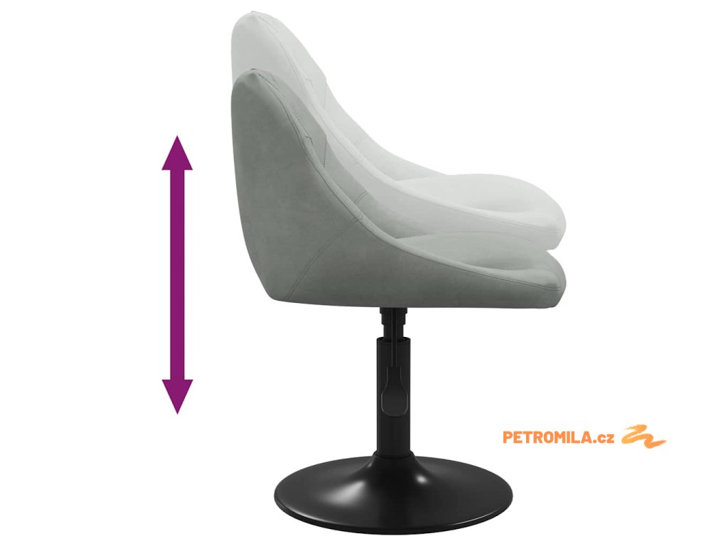 Otočné židle jsou čalouněné měkkým sametem a zajistí vám při sezení maximální pohodlí. Ocelový rám s černým práškovým nástřikem zaručuje mimořádnou odolnost. Výšku otočných židlích lze nastavit pomocí mechanismu s plynovým pístem, takže jsou dokonalým doplňkem do každé jídelny. Navíc se otáčí o 360 stupňů, což jim dodává velkou flexibilitu.
