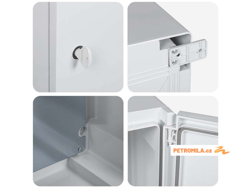 - Super kvalitní materiál: Vyrobená z vysoce kvalitního plastu, je skříň voděodolná a odolná proti teplu, což ji dělá ideální pro náročné podmínky, kde potřebuješ něco pevného. Plast ji udržuje lehkou a přitom pevnou, odolává vlhkosti a teplotním změnám a zároveň vypadá skvěle.