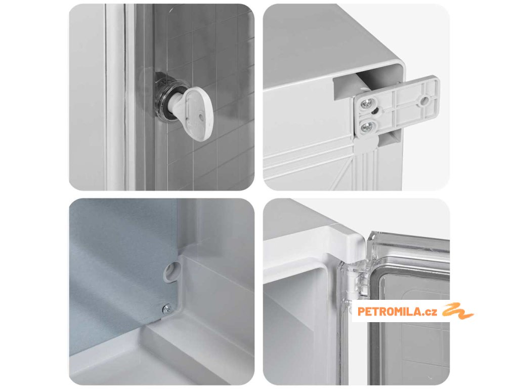 - Super kvalitní materiál: Vyrobená z vysoce kvalitního plastu, je skříň voděodolná a odolná proti teplu, což ji dělá ideální pro náročné podmínky, kde potřebuješ něco pevného. Plast ji udržuje lehkou a přitom pevnou, odolává vlhkosti a teplotním změnám a zároveň vypadá skvěle.
