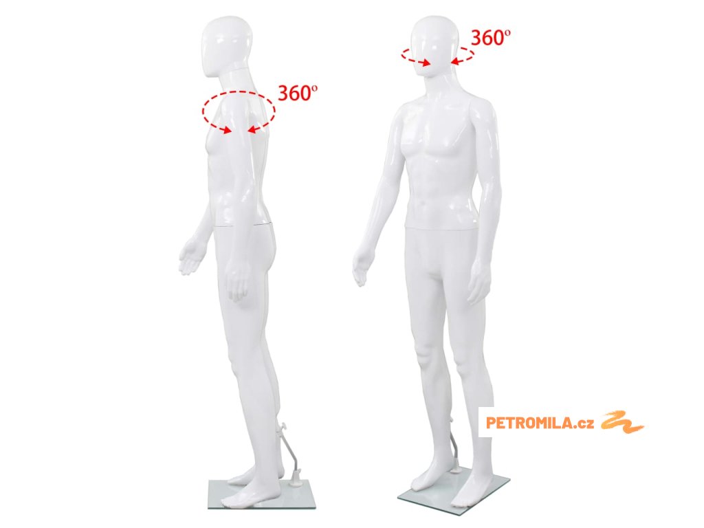 Pánská figurína celá postava základna ze skla lesklá bílá 185cm