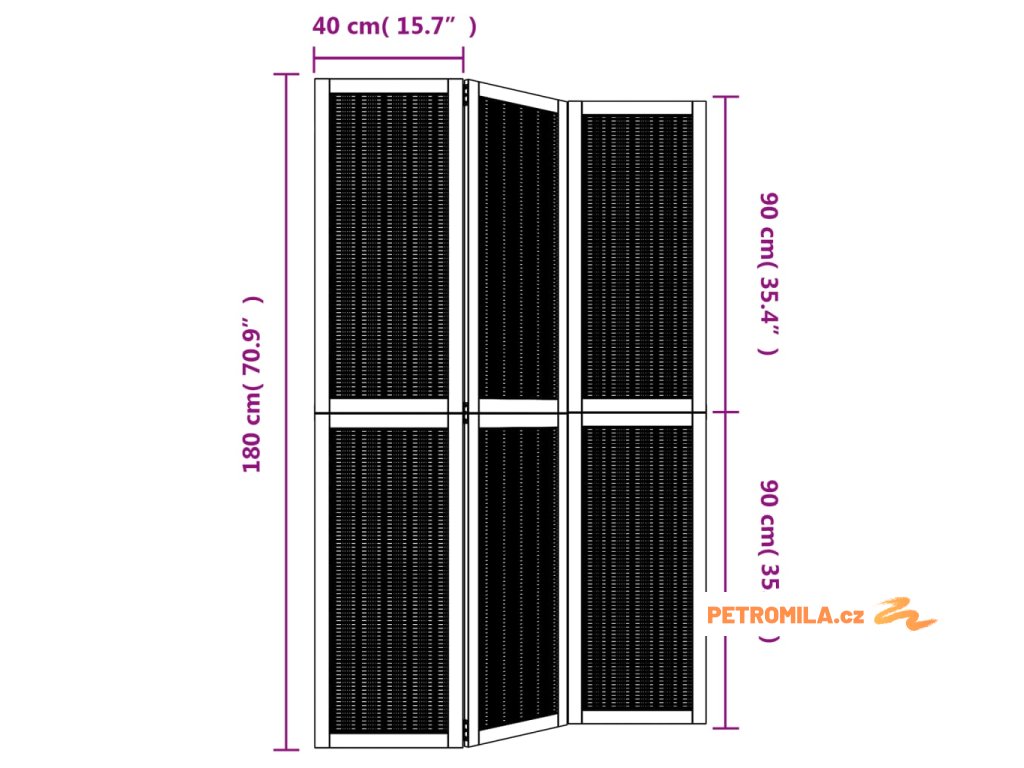 Paraván 3dílný hnědý masivní dřevo pavlovnie