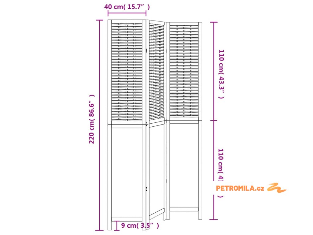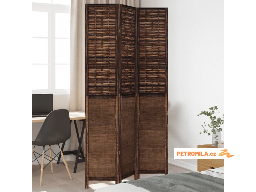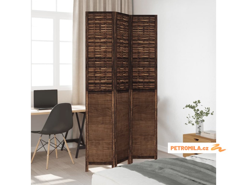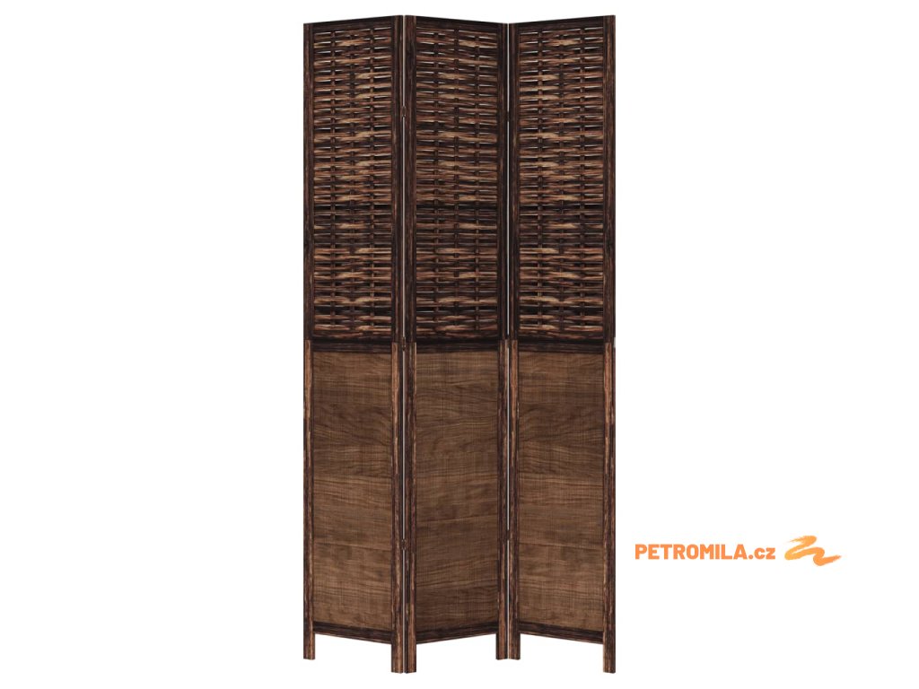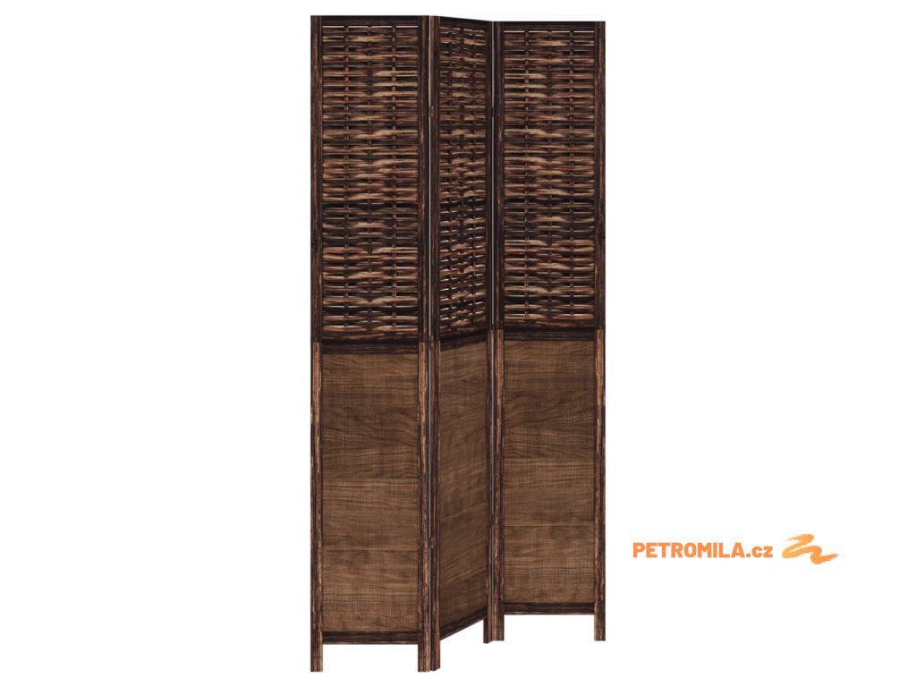 Paraván 3dílný tmavě hnědý masivní dřevo pavlovnie