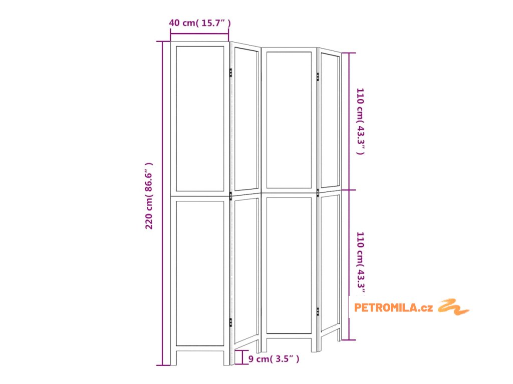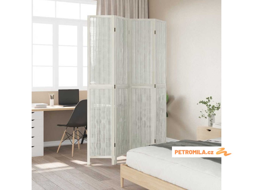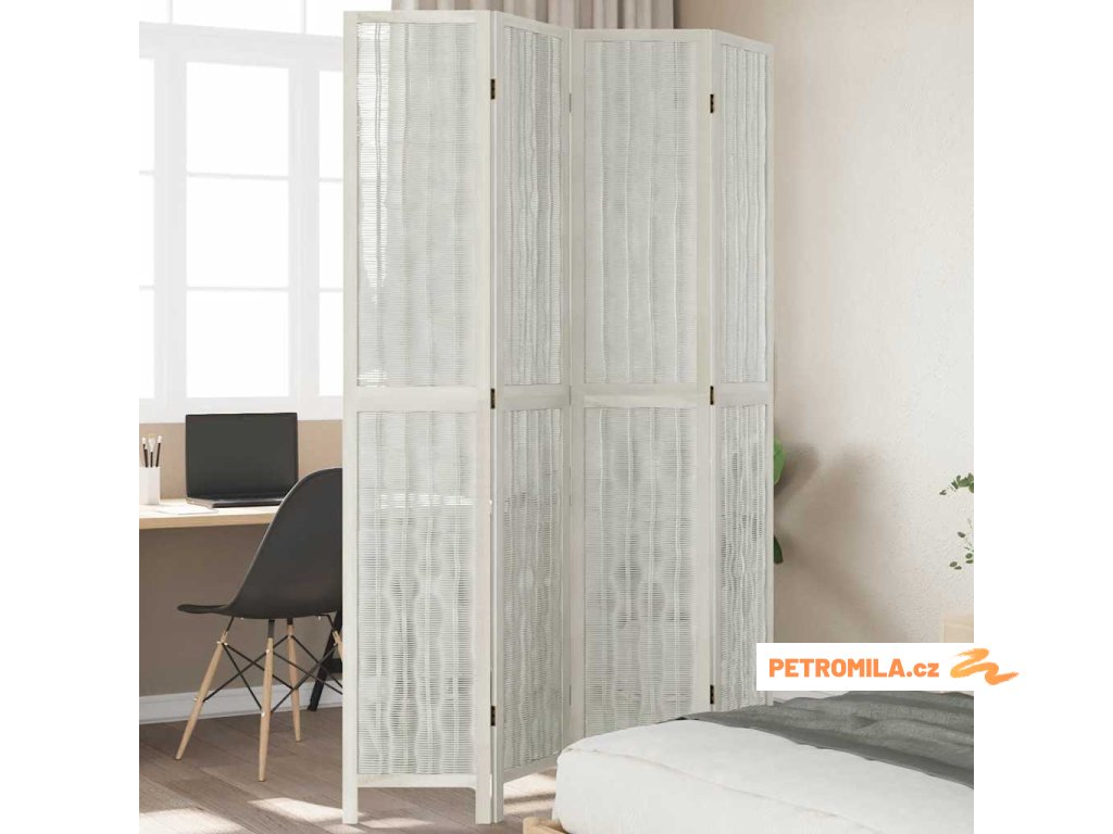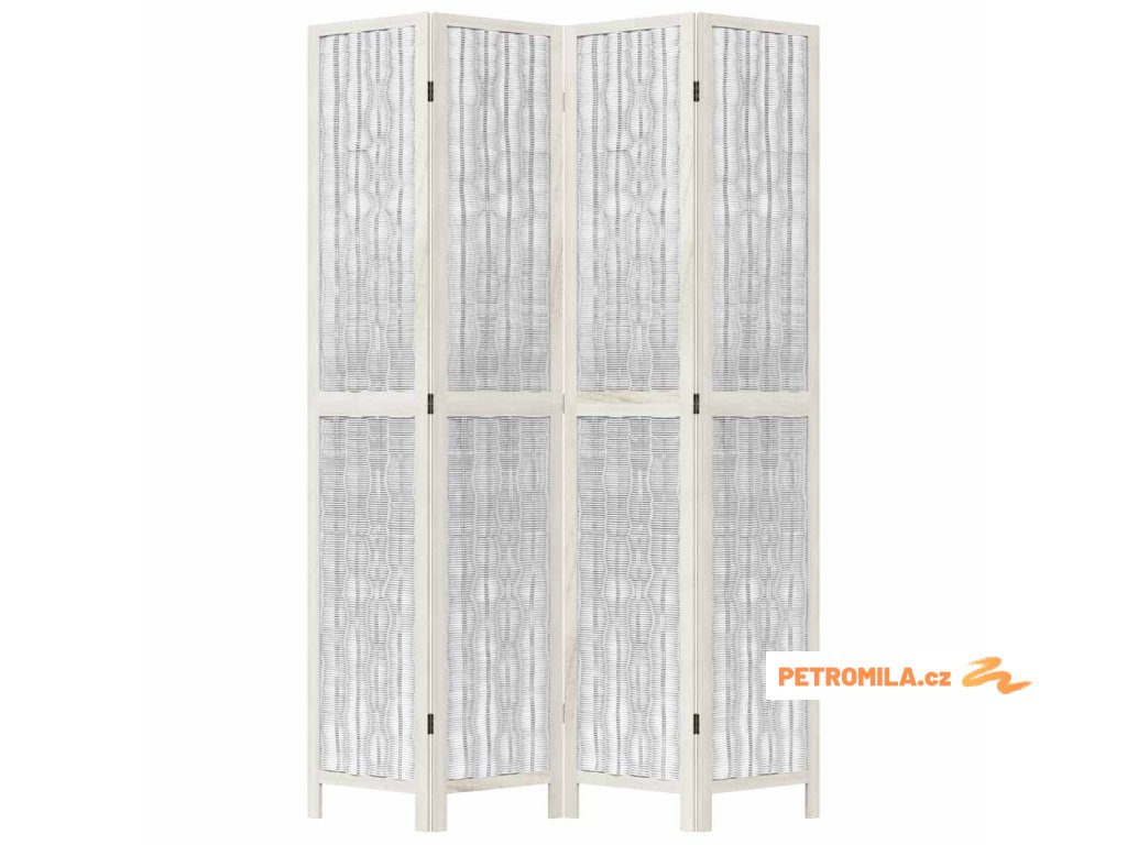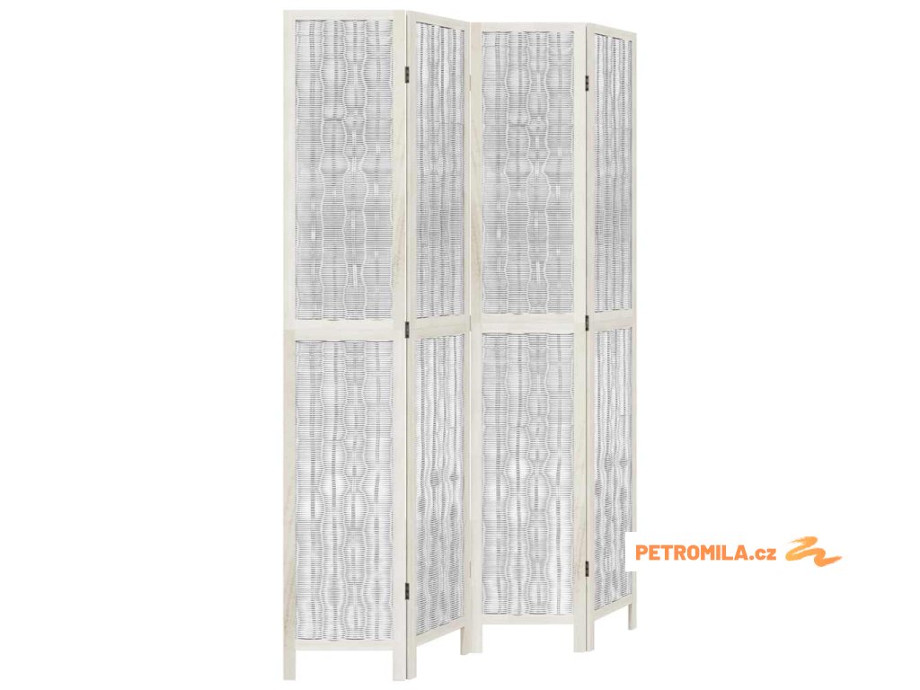 Paraván 4dílný bílý masivní dřevo pavlovnie