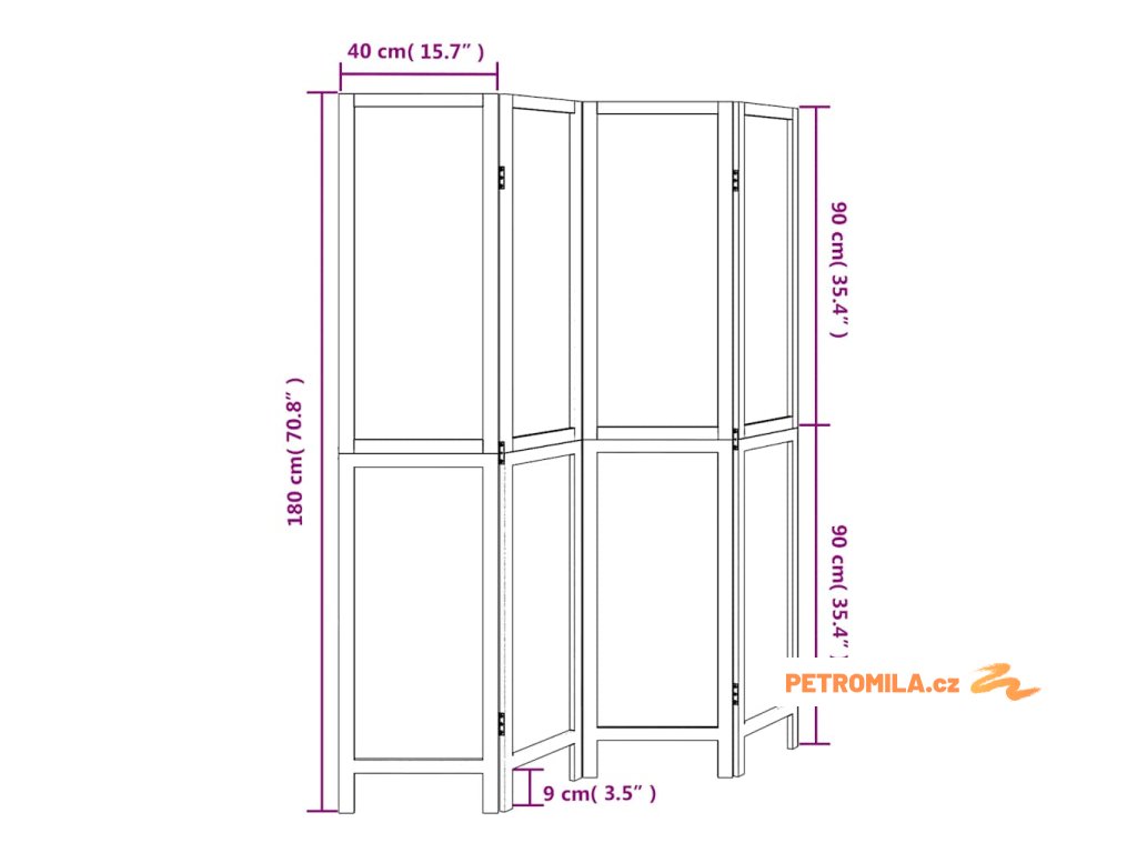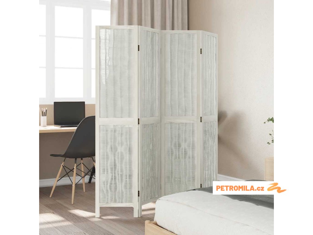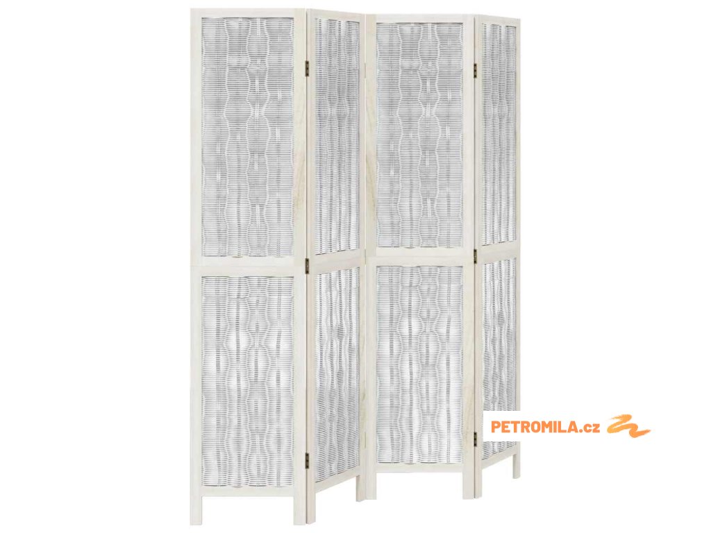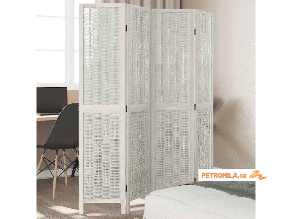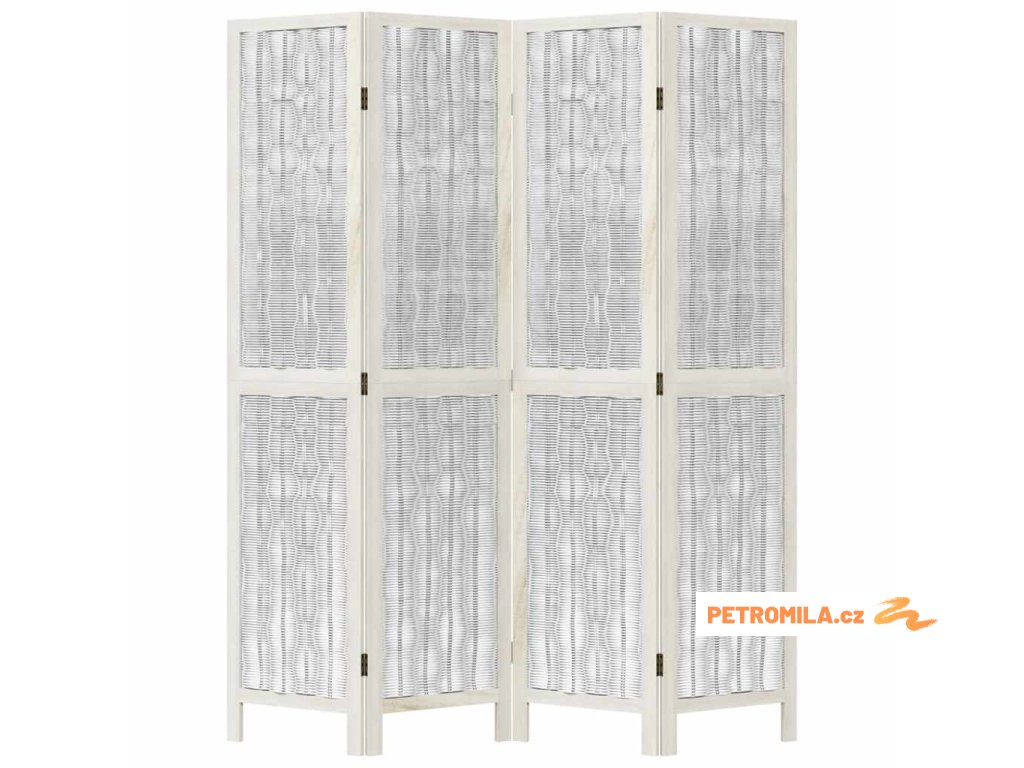 Paraván 4dílný bílý masivní dřevo pavlovnie