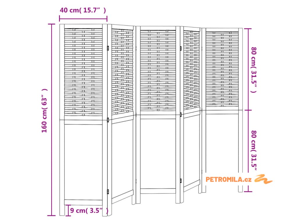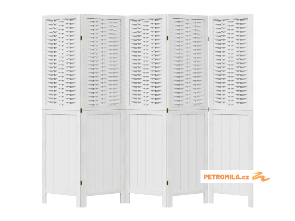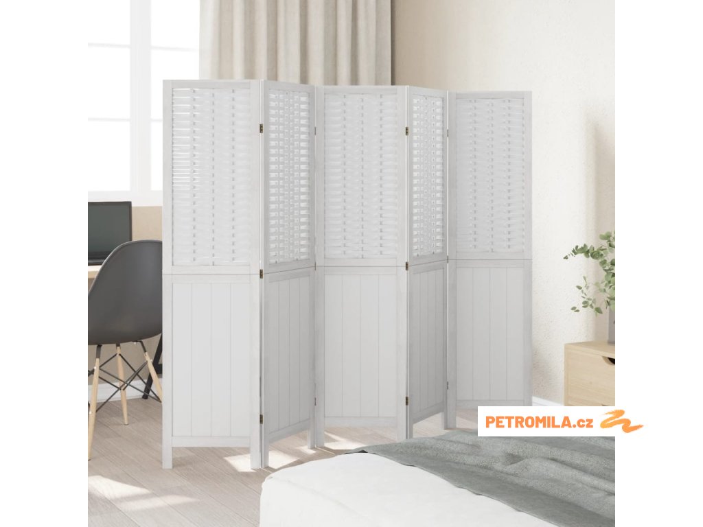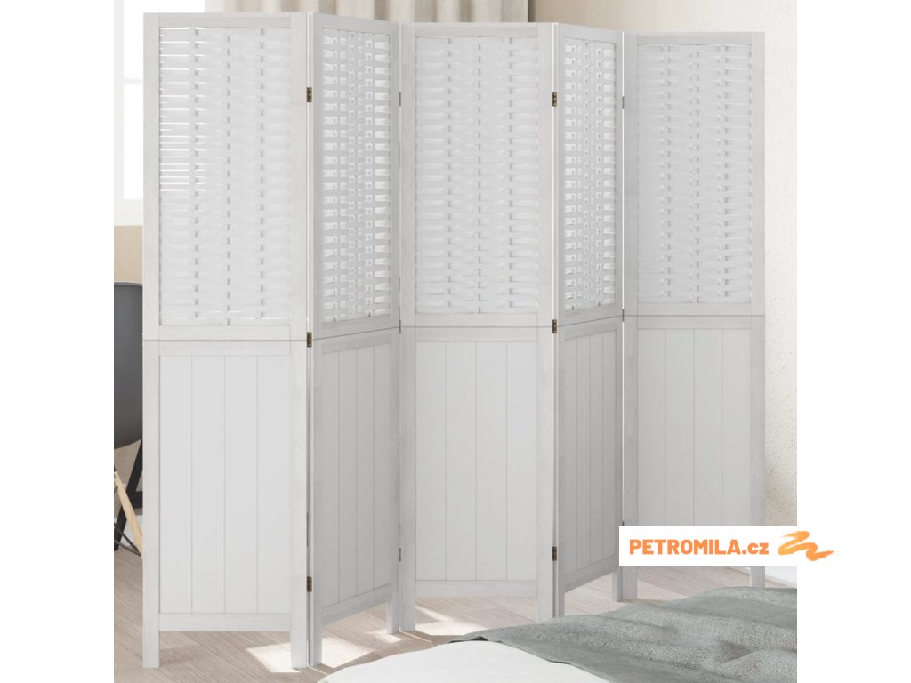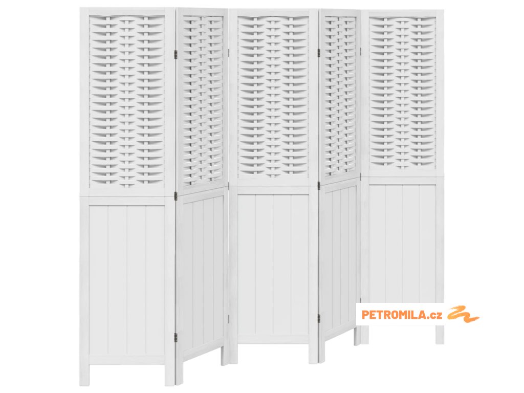 Paraván 5dílný bílý masivní dřevo pavlovnie