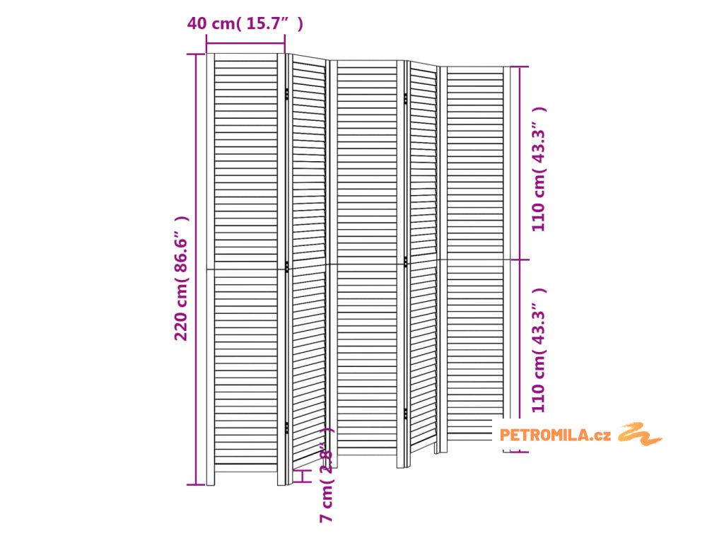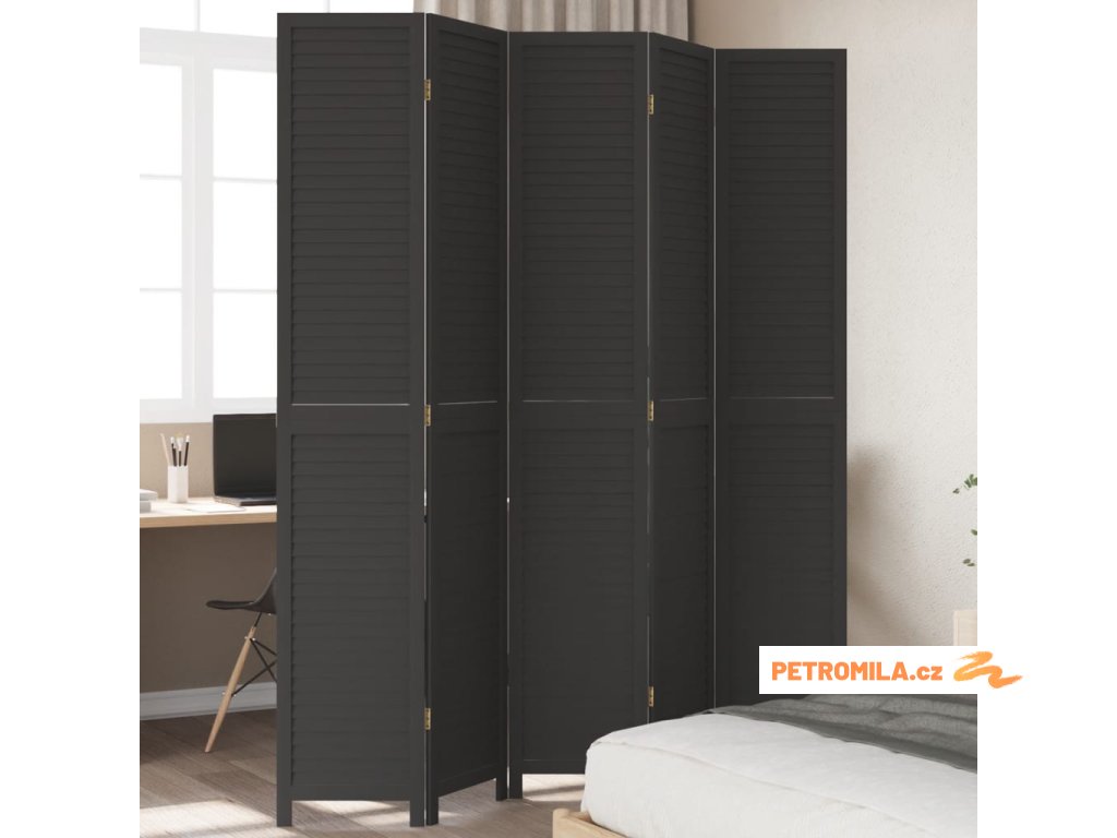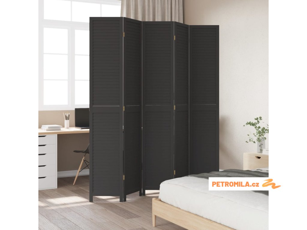 Paraván 5dílný černý masivní dřevo pavlovnie