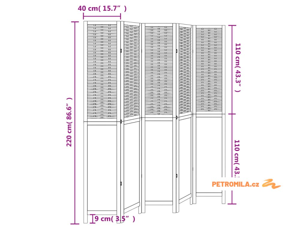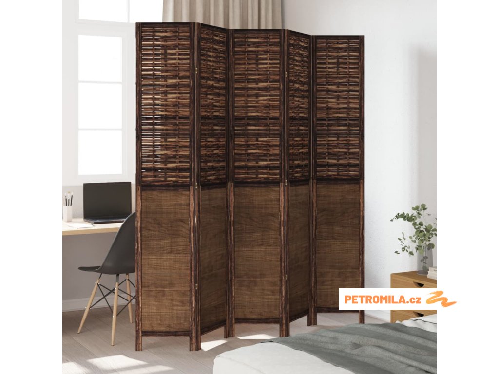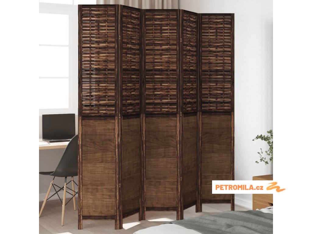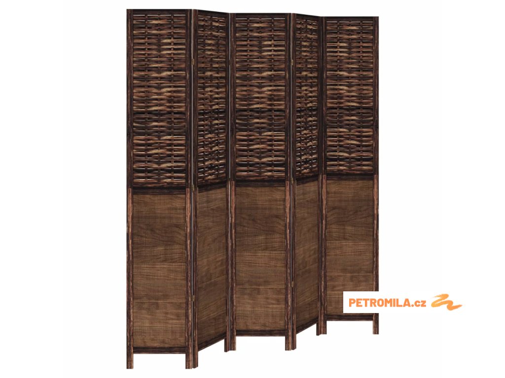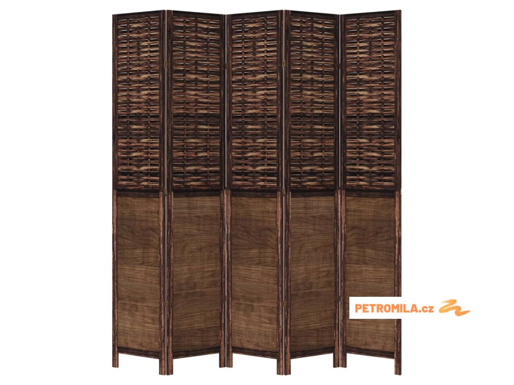 Paraván 5dílný tmavě hnědý masivní dřevo pavlovnie