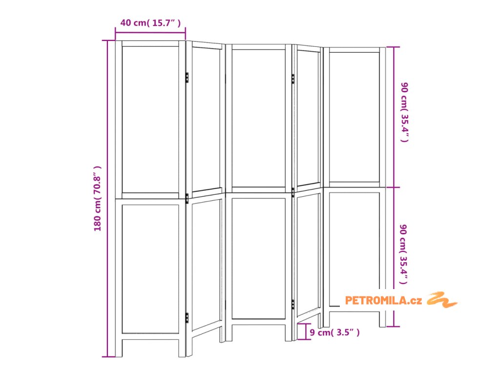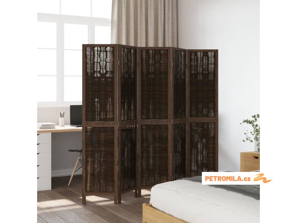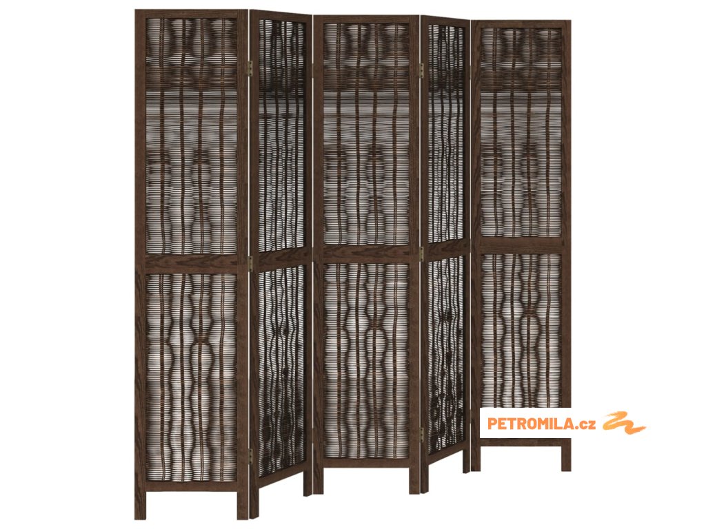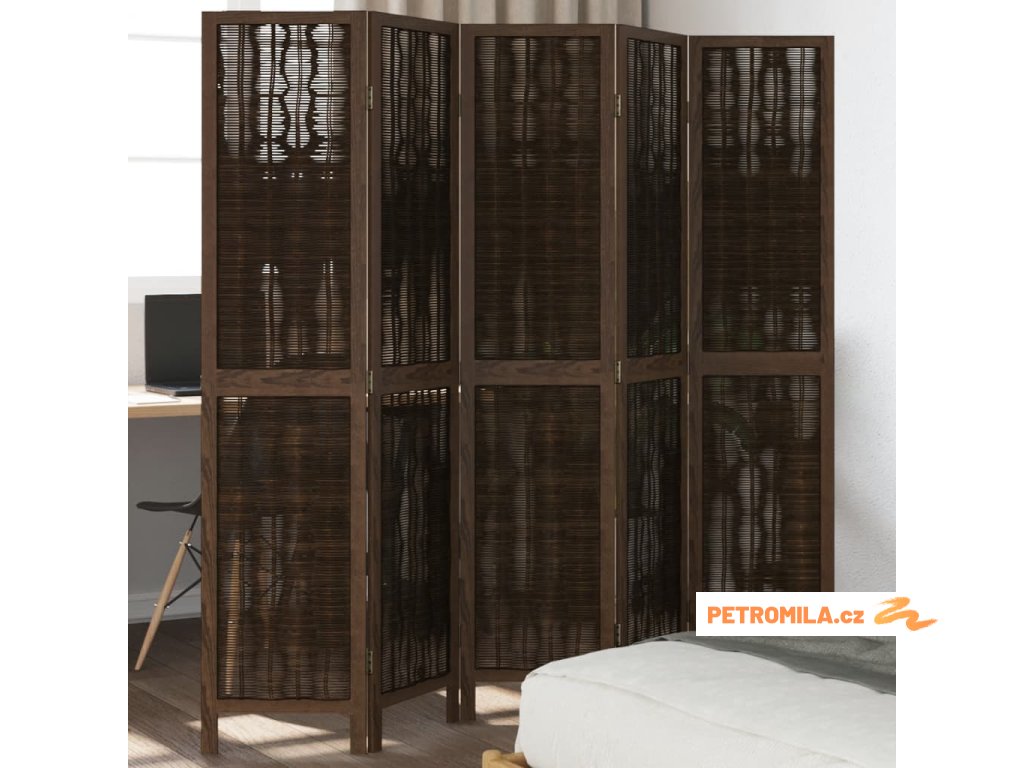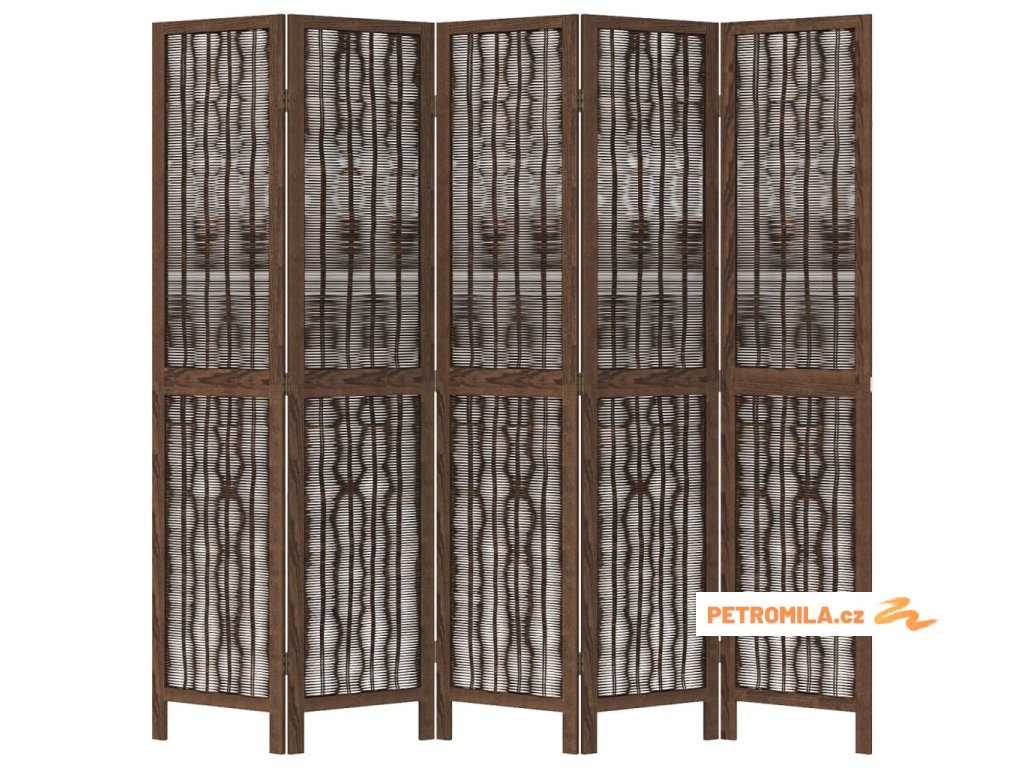 Paraván 5dílný tmavě hnědý masivní dřevo pavlovnie