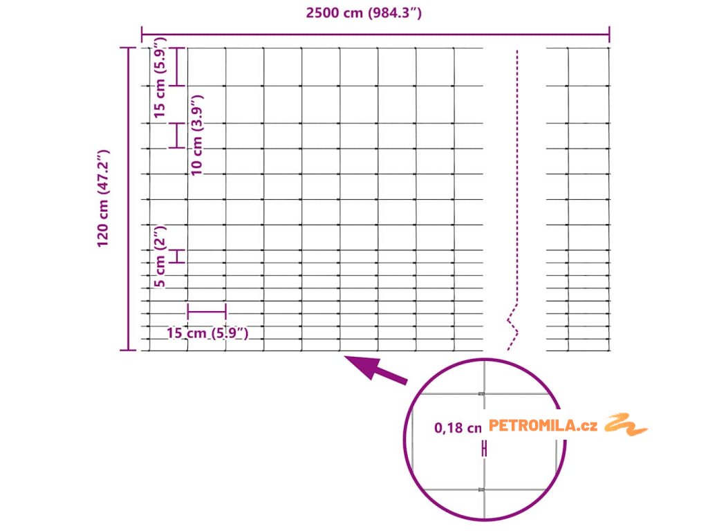 Pastevní plot Stříbrná 25 x 1,2 m Pozinkovaná ocel