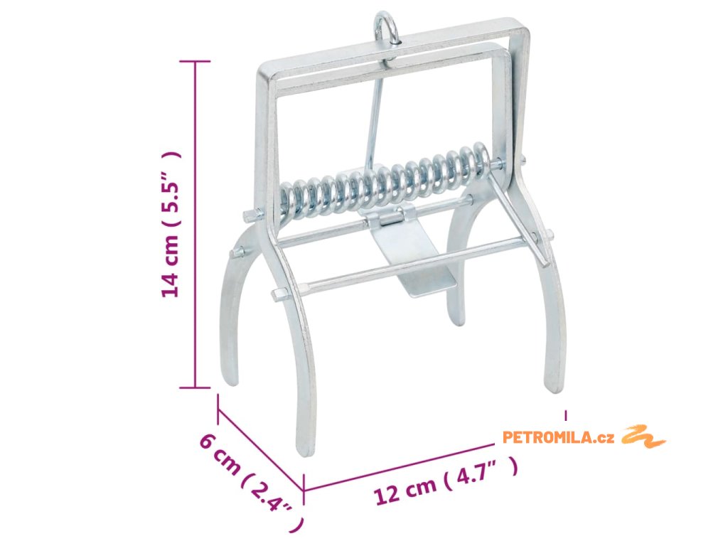 - Odolný materiál: Past na krtky je vyrobená z pozinkované oceli, takže je odolná proti korozi a povětrnostním vlivům. Vzhledem k důmyslné mechanické konstrukci je past nákladově efektivní a lze ji používat opakovaně.