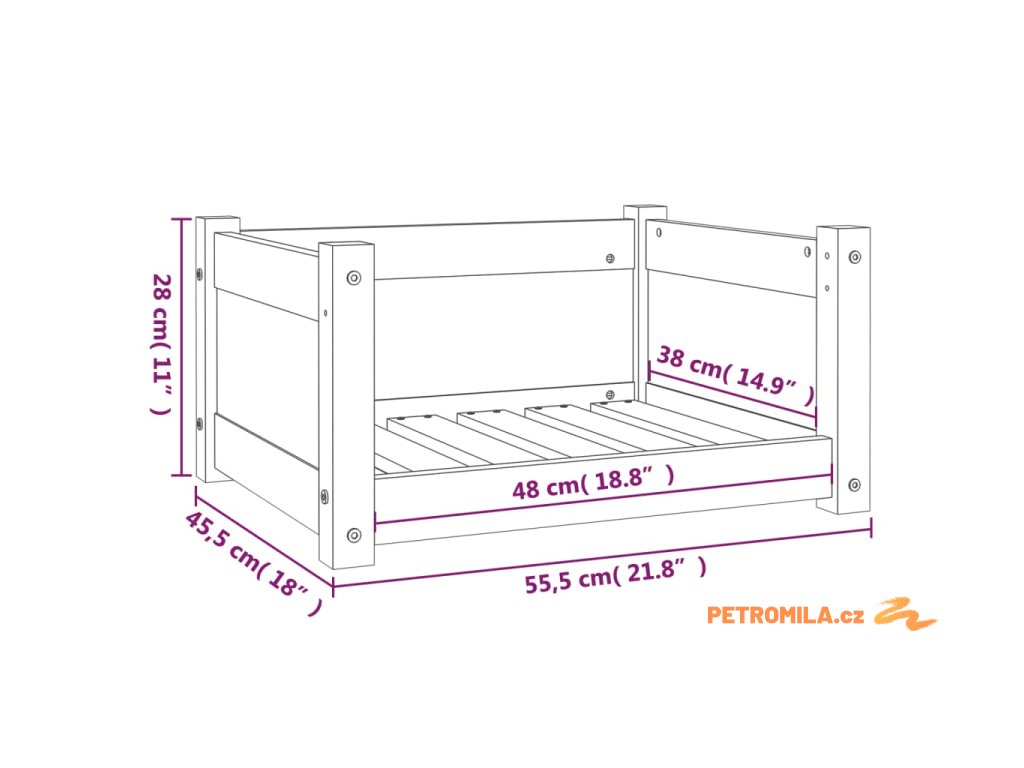 Pelíšek pro psy bílý 55,5 x 45,5 x 28 cm masivní borovicové dřevo