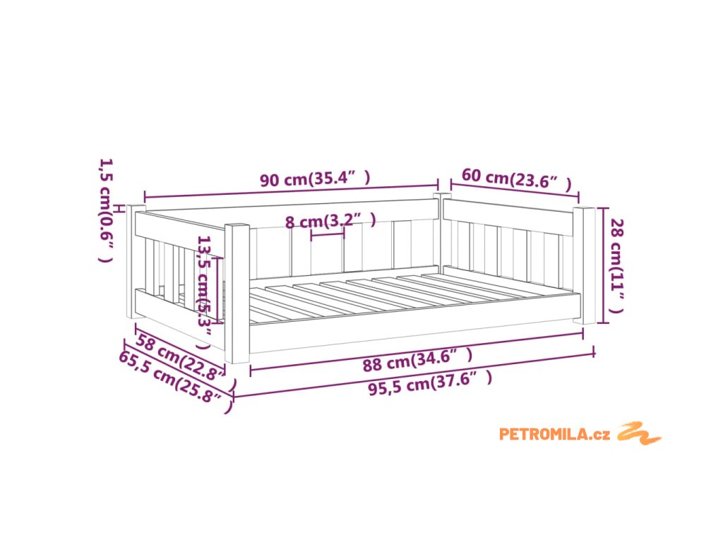 Pelíšek pro psy bílý 95,5 x 65,5 x 28 cm masivní borovice