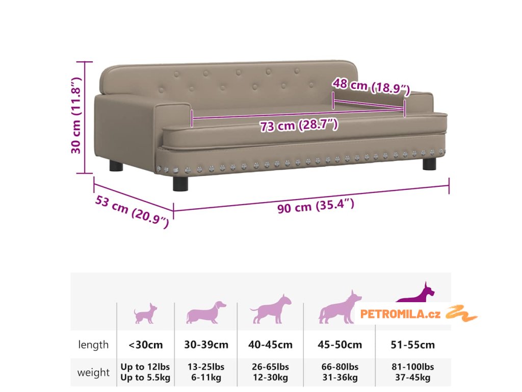 Pelíšek pro psy cappuccino 90 x 53 x 30 cm umělá kůže