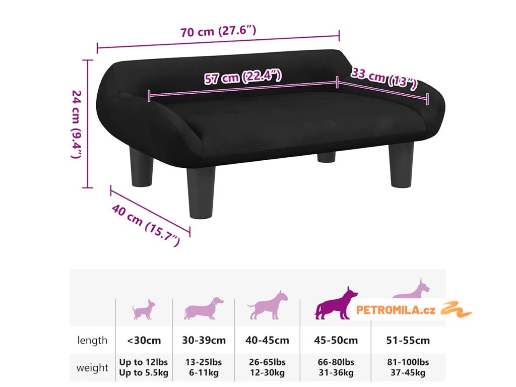 Pelíšek pro psy černý 70 x 40 x 24 cm samet