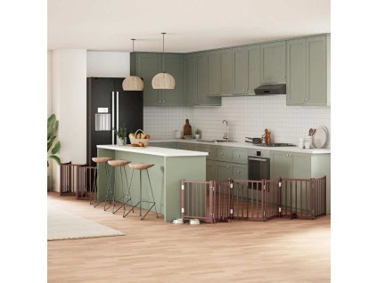 Zábrana pro psy s dvířky skládací 15 panelů hnědá 750 cm topol