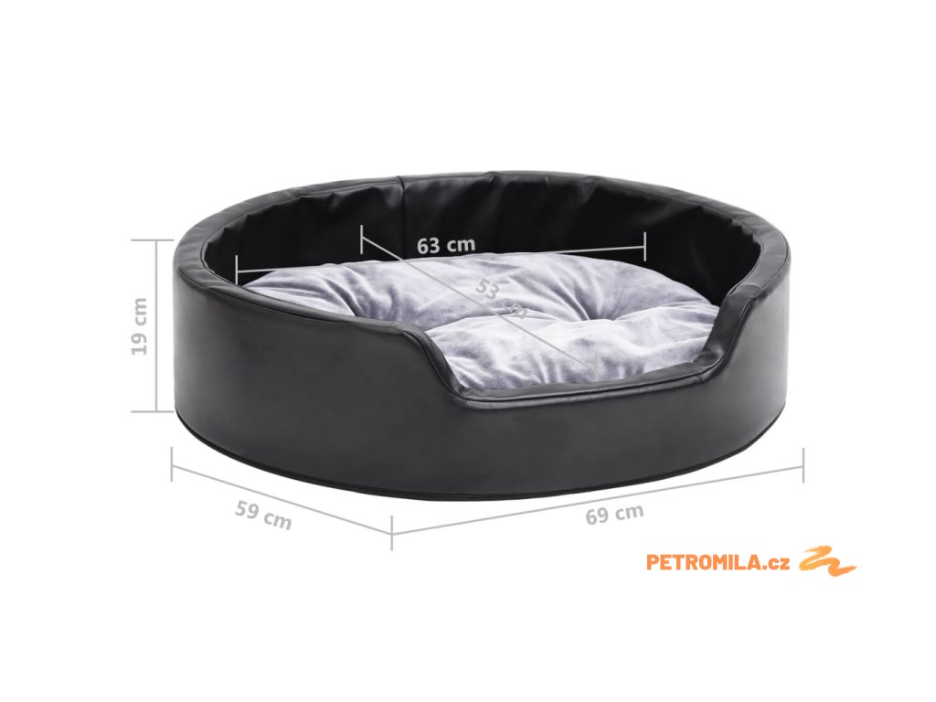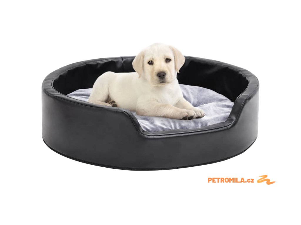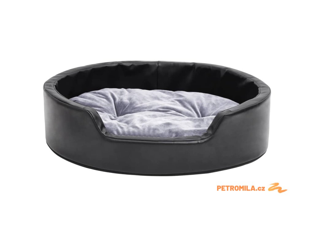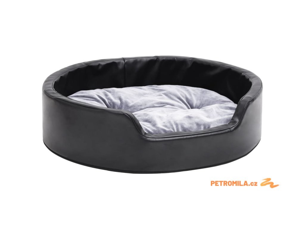 Pelíšek pro psy černý a šedý 69 x 59 x 19 cm plyš a umělá kůže