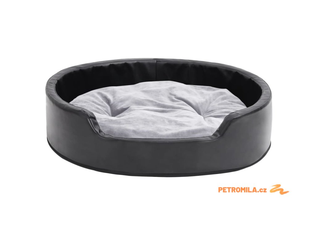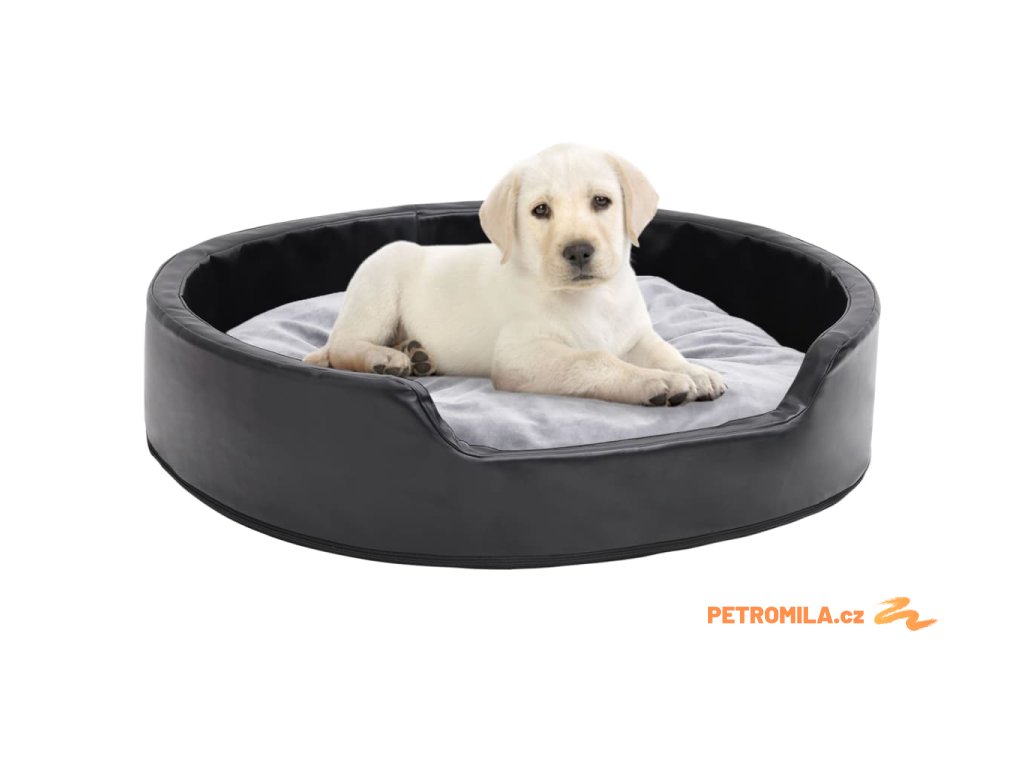 Pelíšek pro psy černý a šedý 79 x 70 x 19 cm plyš a umělá kůže
