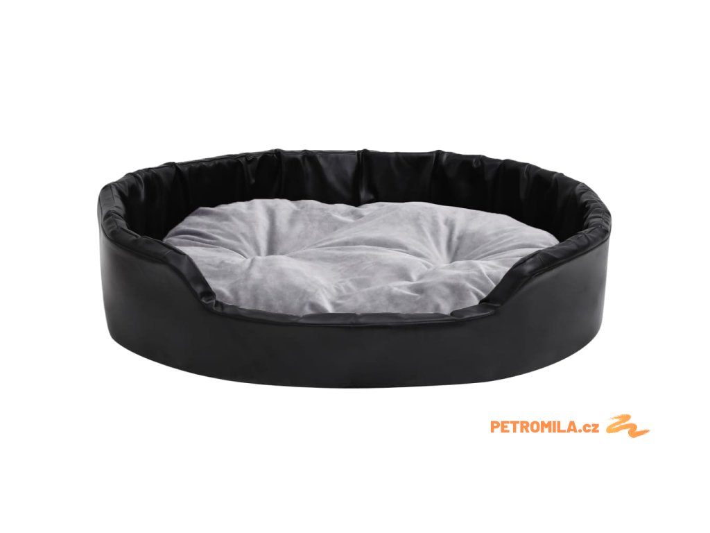Pelíšek pro psy černý a šedý 90 x 79 x 20 cm plyš a umělá kůže