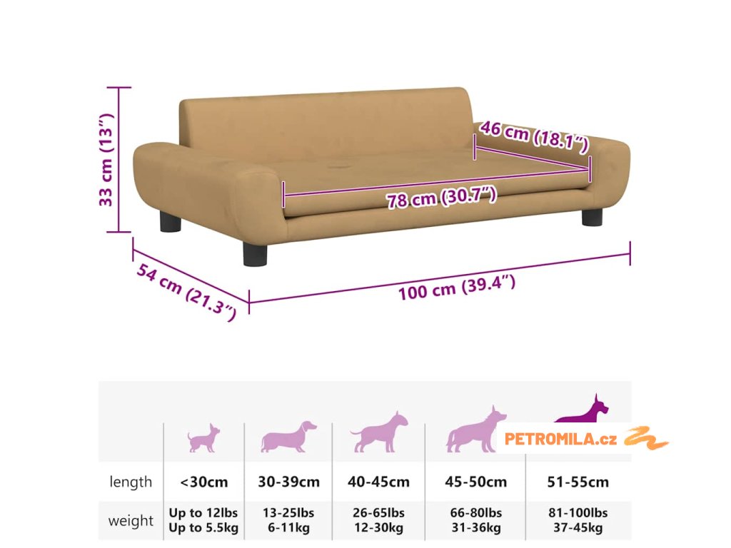 Pelíšek pro psy hnědý 100 x 54 x 33 cm samet