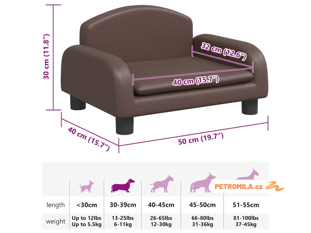 Pelíšek pro psy hnědý 50 x 40 x 30 cm umělá kůže